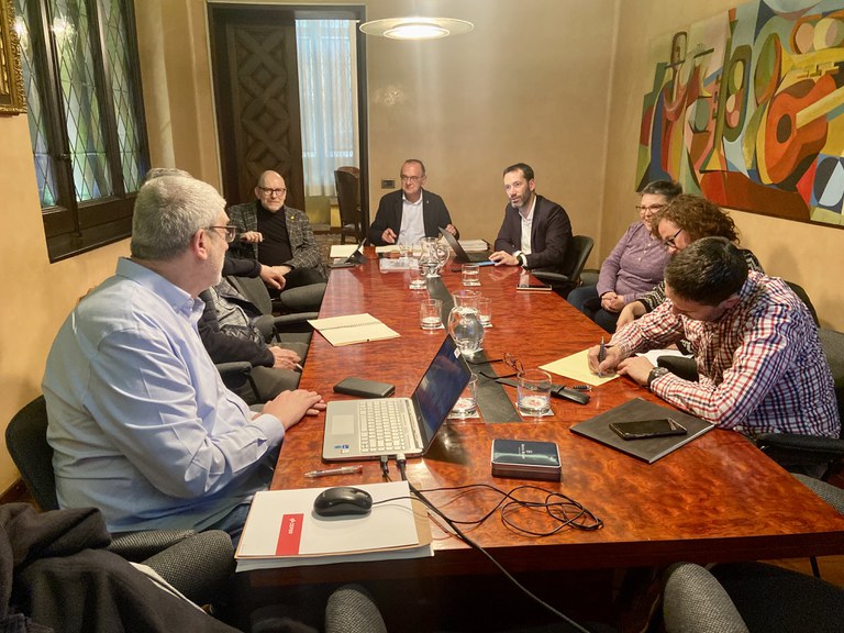 L’alcalde Miquel Pueyo i el regidor Jaume Rutllant s’han reunit aquesta tarda amb representants de l’entitat, que han lliurat al govern una diagnosi dels espais lliures per a arbres que han detectat al municipi