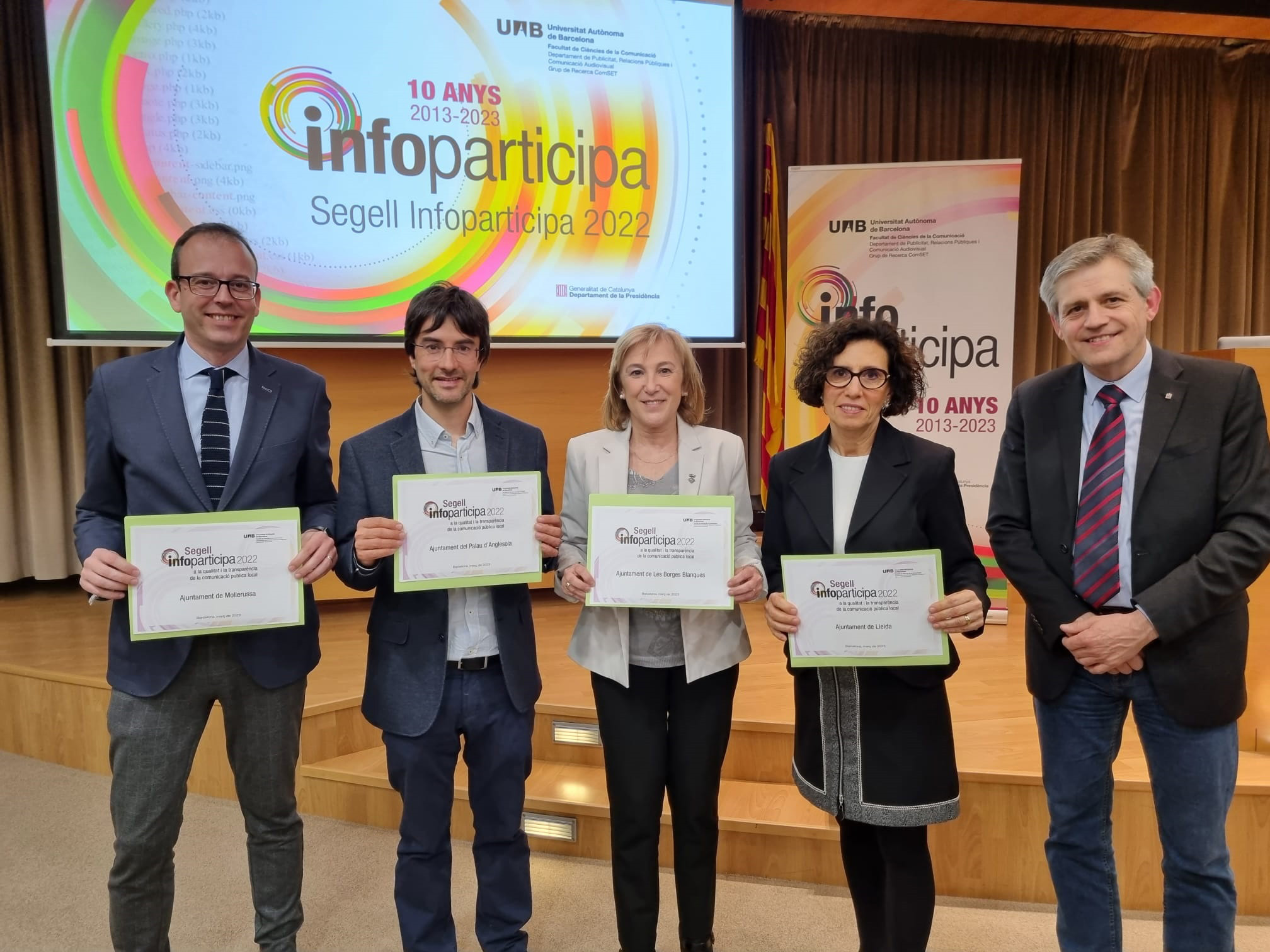 El lliurament del Segell Infoparticipa 2022 es fa aquesta tarda, a les 17 h, a la sala d’actes del Rectorat de la UAB. Aquesta edició celebra els 10 anys d’aquest guardó per als ajuntaments i és el 8è per a consells comarcals i el 7è per a diputacions.