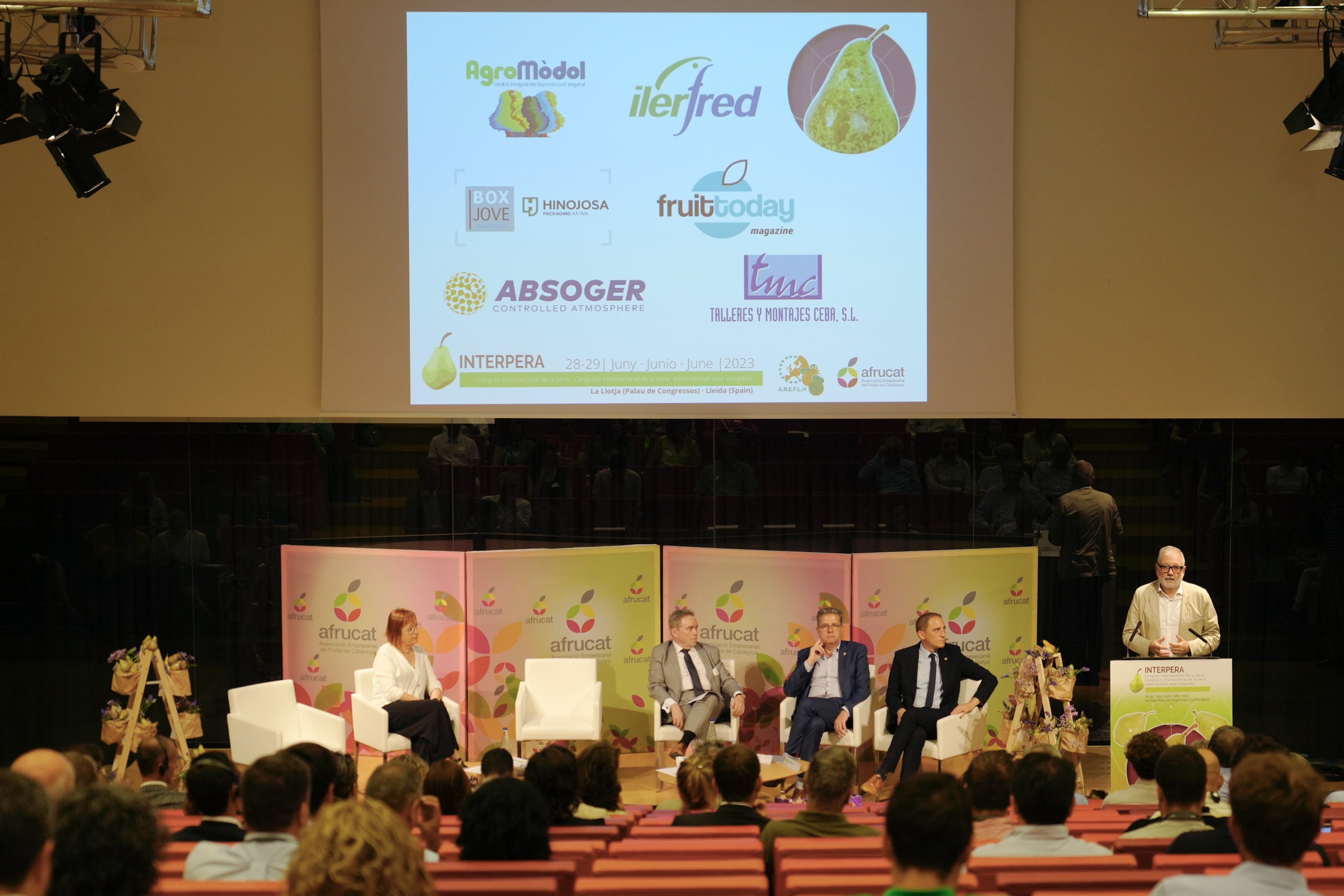 El congrés internacional de la pera Interpera aplega aquest dimecres i dijous a Lleida el sector de la producció europea d’aquesta fruita per valorar i estimar l’evolució del seu mercat. La Llotja acull durant tot el dia d’avui taules rodones i xerrades per analitzar els reptes i oportunitats del sector i les implicacions del canvi climàtic en les diferents zones productores europees. El paer en cap, Fèlix Larrosa, ha participat en l’acte de benvinguda que s’ha fet als i les congressistes i ha afirmat que Interpera contribueix a la capitalitat agroalimentària de Lleida, que es vol consolidar perquè es reconegui la seva internacionalització.