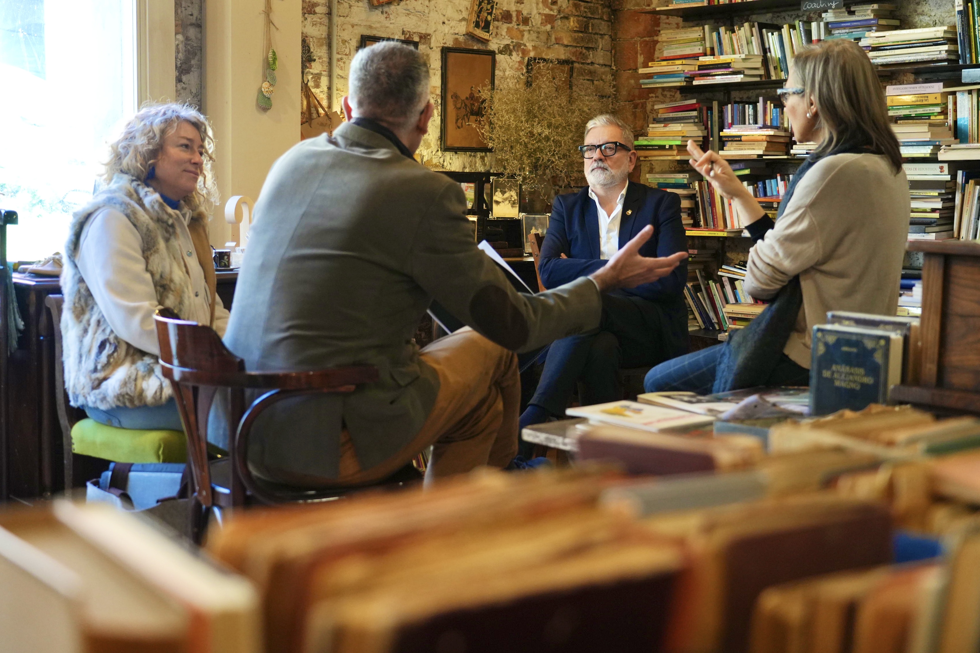 El paer en cap ha aprofitat la seva visita al Centre Històric per saludar els responsables de diverses entitats i comerços del barri, entre ells la llibreria La Sabateria, ubicada al carrer Lluis Besa.