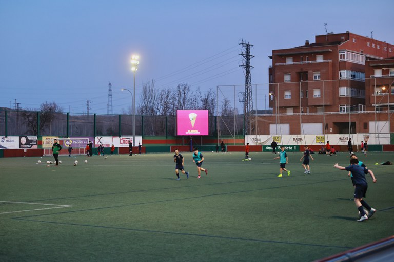 Entre les reformes, fetes amb la col·laboració de la Paeria i el club de futbol, hi ha nou enllumenat, una graderia fixa i una pantalla-marcador al camp