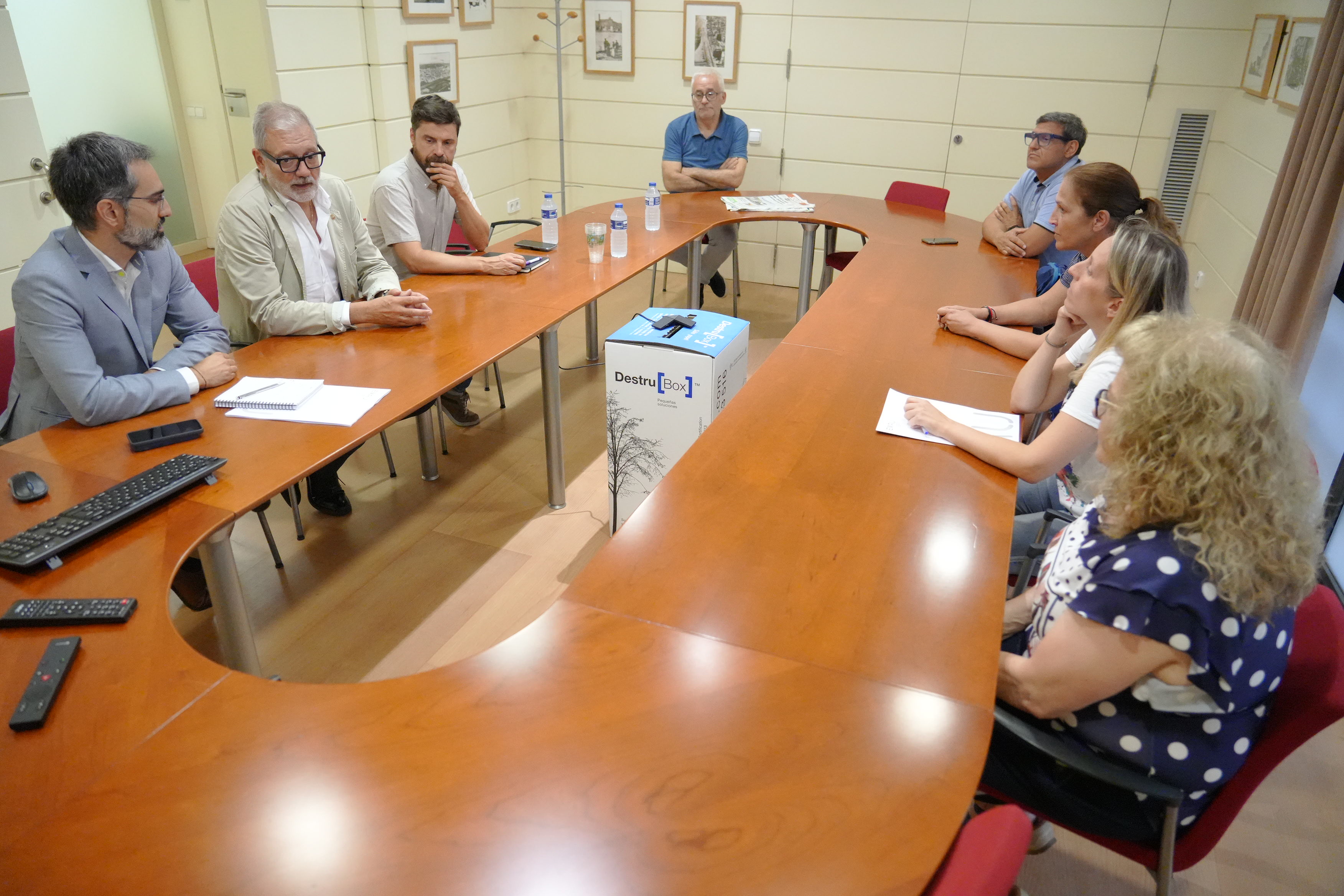 El paer en cap, Fèlix Larrosa, ha visitat avui les instal·lacions de l’Empresa Municipal d’Agenda Urbana (EMAU) al carrer Cavallers, acompanyat pel segon tinent d'alcalde, Carlos Enjuanes, i pel gerent de l'Empresa, Samuel de la Fuente. L'alcalde ha pogut saludar tots els treballadors i treballadores, així com mantenir també una trobada amb els representants sindicals per copsar les seves inquietuds.