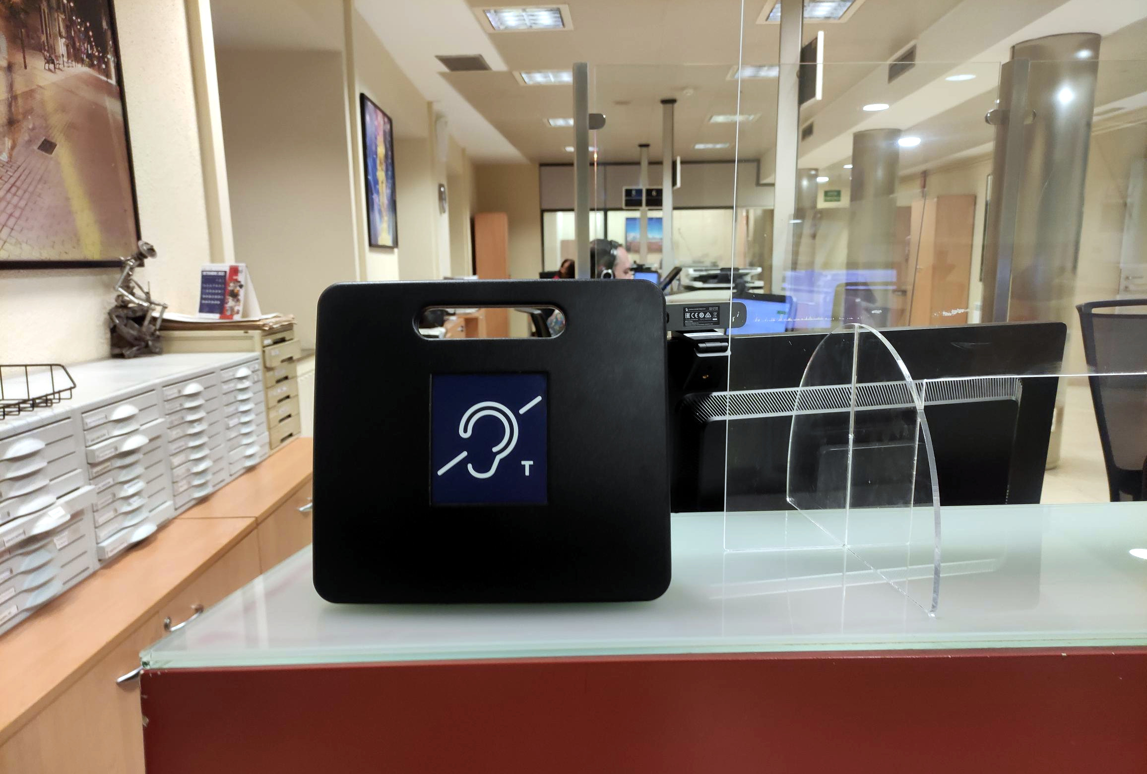 Per l’altra, també es disposa d’un bucle d’inducció magnètica, que permet una comunicació sense interferències, neta de soroll, amb les persones  que facin servir un implant o audiòfon en "posició T".