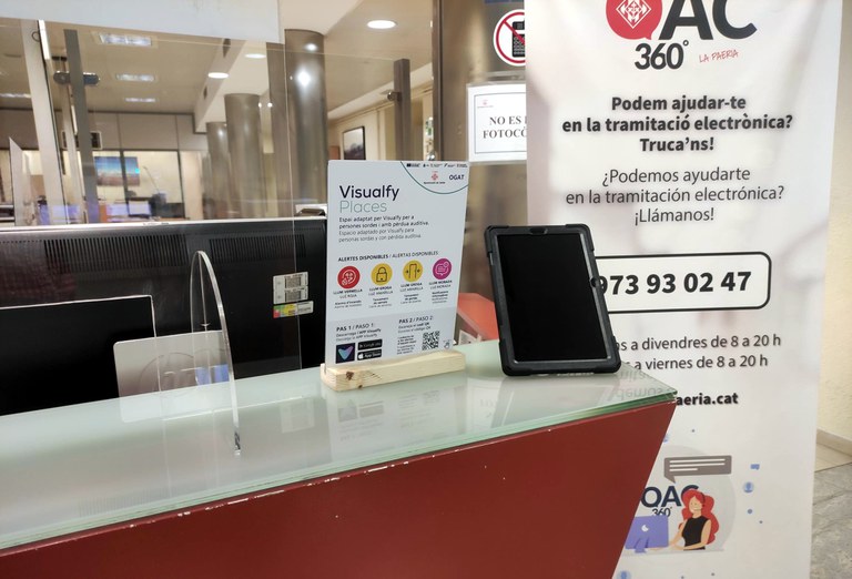 S’han instal·lat dispositius que emeten senyals visuals, un bucle magnètic per la millora de la comunicació auditiva  i una tauleta amb un programa de traducció simultània que facilita la comunicació amb persones que no parlen català o castellà o que tenen una discapacitat comunicativa