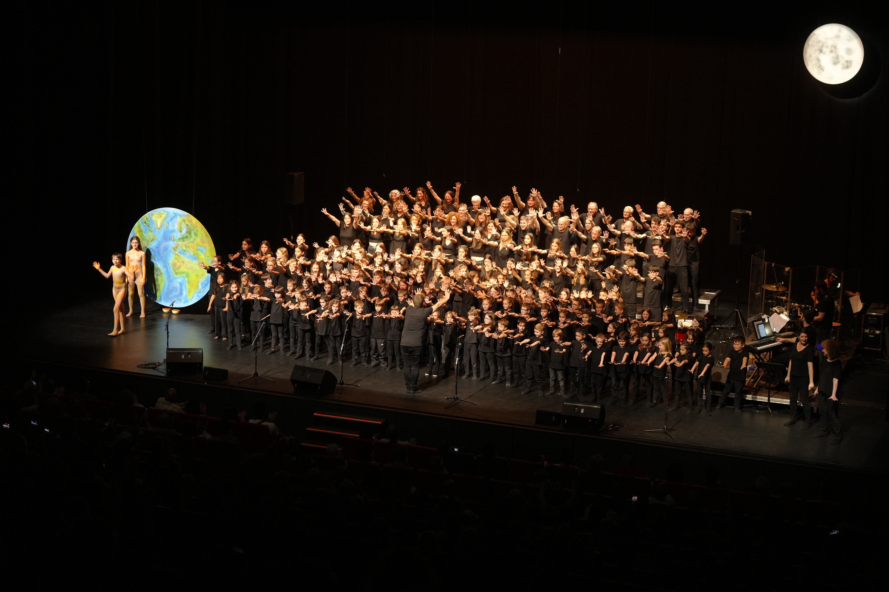 “Mare Terra” ha comptat amb la participació dels Cors Infantils i Joves de l’Orfeó, actors de l’Aula Municipal de Teatre, i amb la direcció escènica de Dani Coma.