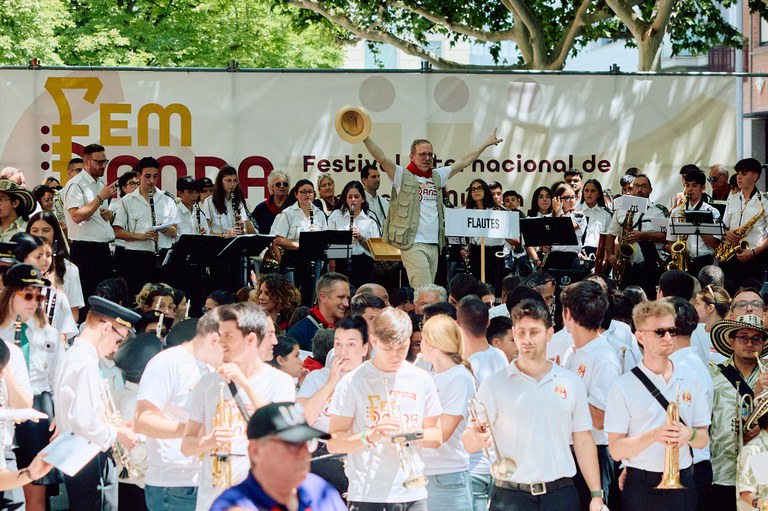 El director del festival, Amadeu Urrea, dirigeix el concert final conjunt amb totes les bandes.