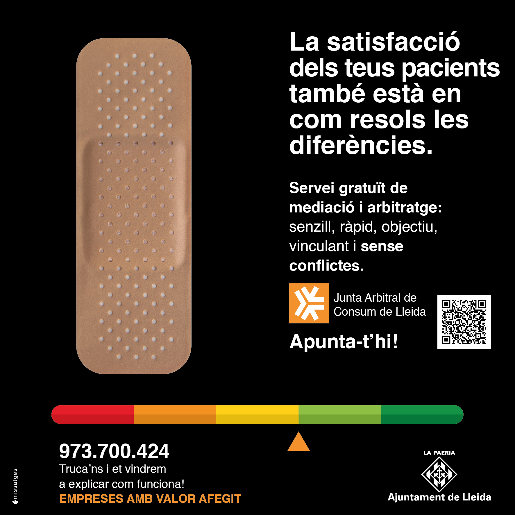 La Junta Arbitral de Consum de Lleida (JAC Lleida) inicia avui divendres, 24 de novembre, la campanya "Satisfacció: empreses amb valor afegit"; una invitació perquè les empreses lleidatanes s'adhereixen al sistema d'arbitratge en consum i millorin la seva competitivitat.
