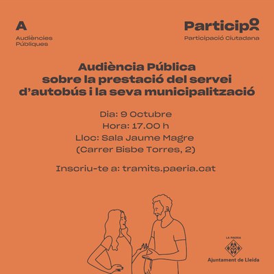 L’Ajuntament de Lleida ha convocat una audiència pública sobre la gestió del servei de transport urbà col·lectiu el proper 9 d’octubre, a les 17.00 hores, a la sala Jaume Magre.
