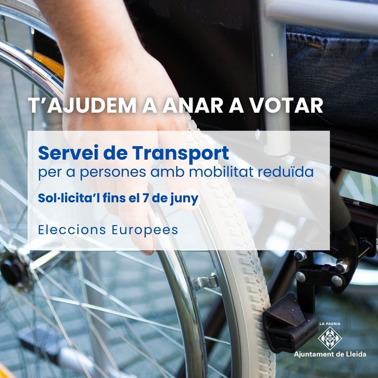 Fins el proper dia 7 de juny, l’Ajuntament de Lleida recull la sol·licitud de serveis de transport esporàdic per a totes aquelles persones que tinguin dificultats de mobilitat o limitacions físiques que requereixin d’un servei de transport adaptat, servei de taxi, i /o de voluntariat, per desplaçar-se als col·legis electorals, el proper dia 9 de juny, amb motiu de les eleccions al Parlament Europeu.