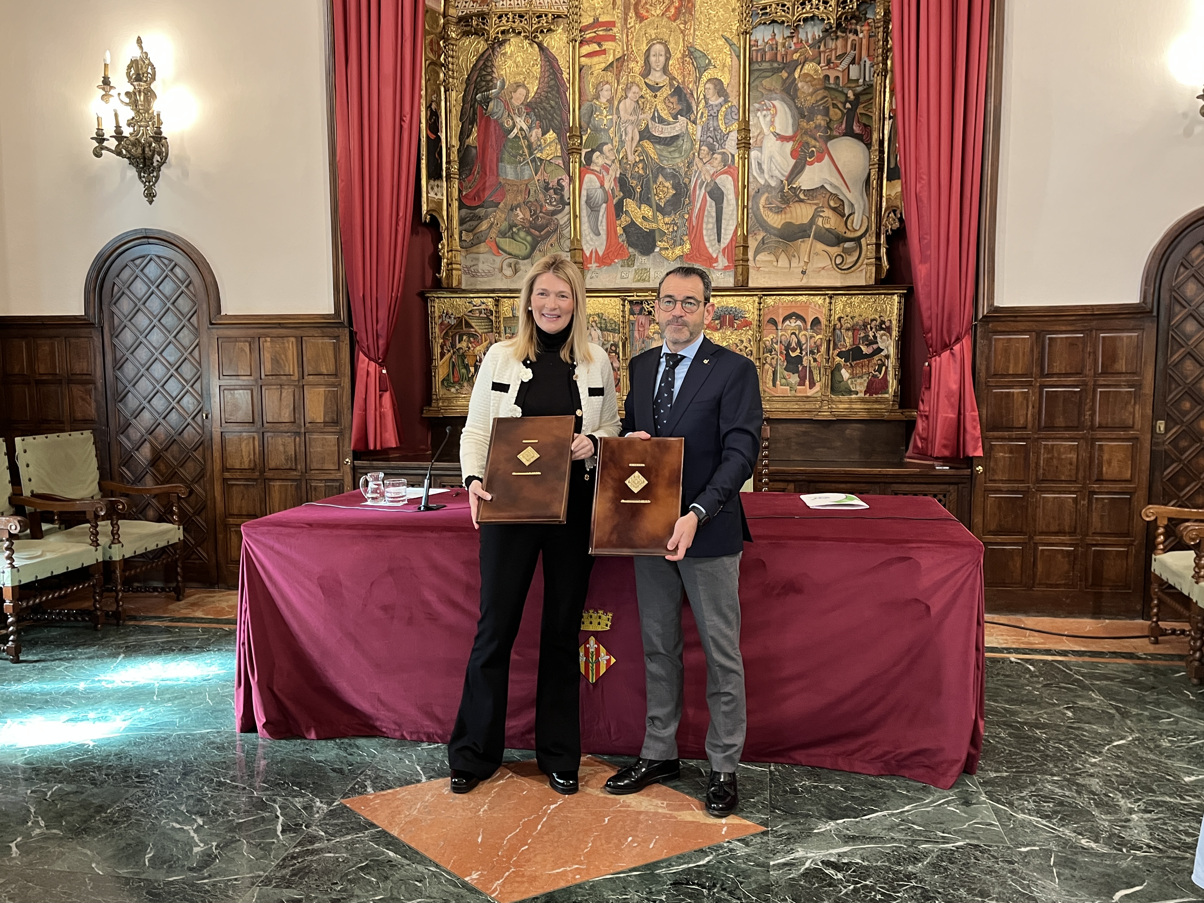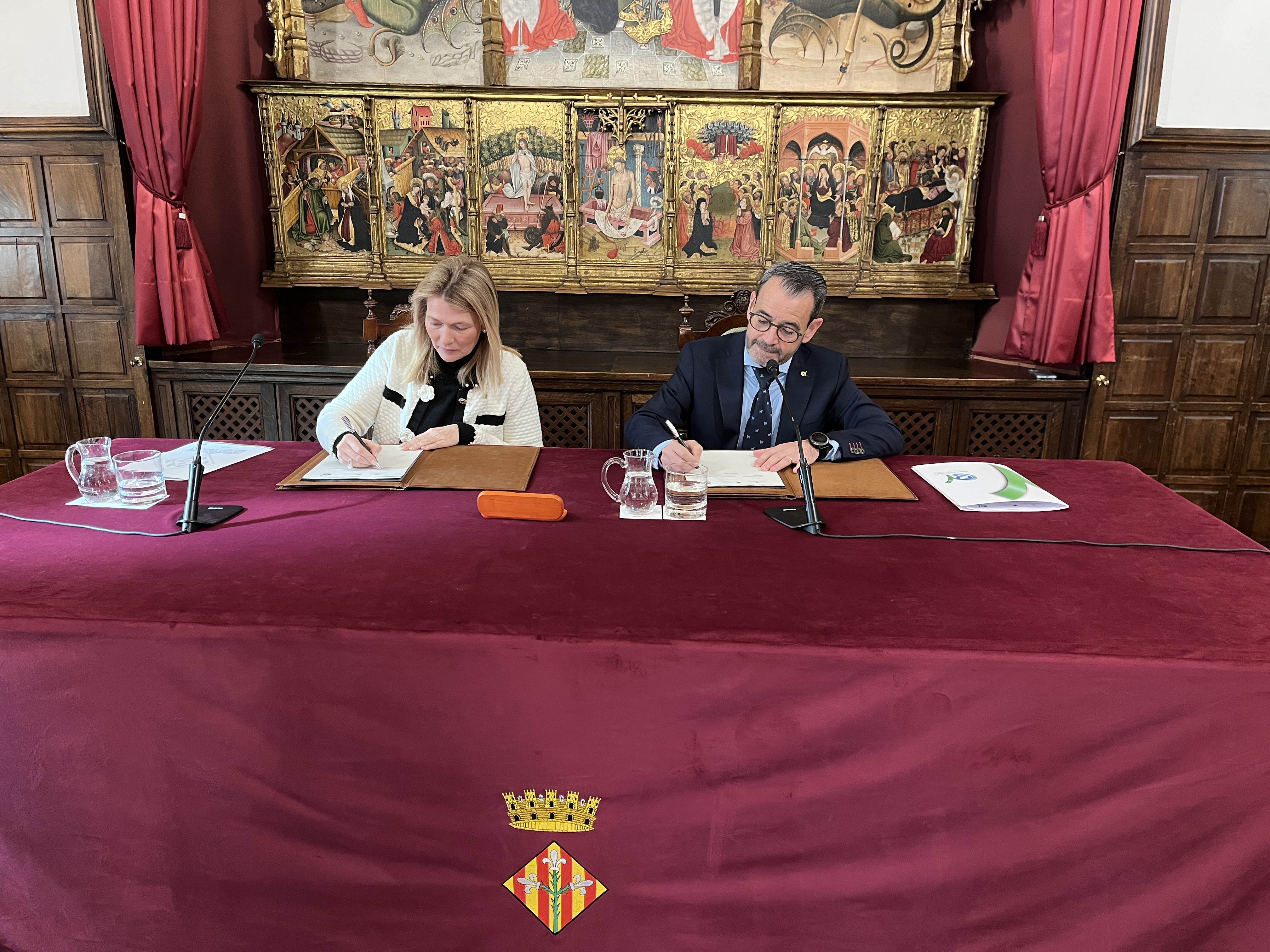 La tinenta d’alcalde Begoña Iglesias i el president del Col·legi, Miquel Molins, han signat avui l’acord, que també inclou assessorament tècnic, suport en formació i implicació en taules participatives
