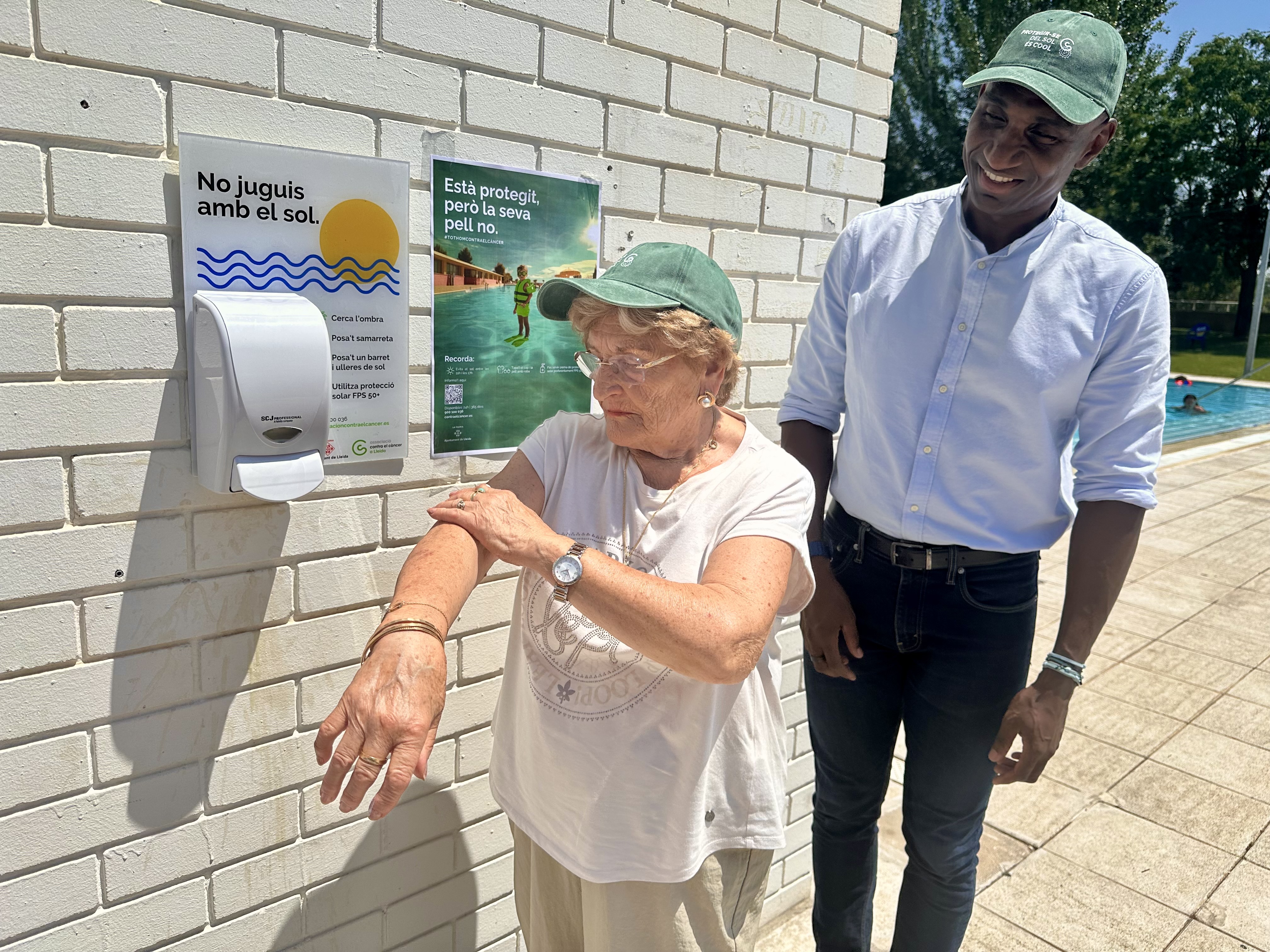 La Paeria i l’Associació Contra el Càncer a Lleida tornen a difondre enguany la campanya sobre la importància de la protecció solar. Les accions principals se centren a les piscines municipals de la ciutat, on es poden utilitzar els dispensadors gratuïts de crema solar. El regidor d’Esports i de Salut, Jackson Quiñonez, i les representants l’entitat, Alícia Badia, Anna Hornero i Isaura Perelló, han fet avui seguiment de la campanya a la piscina municipal de Pardinyes, amb Ramon Salla, qui ha assistit en representació de l’Orvepard.