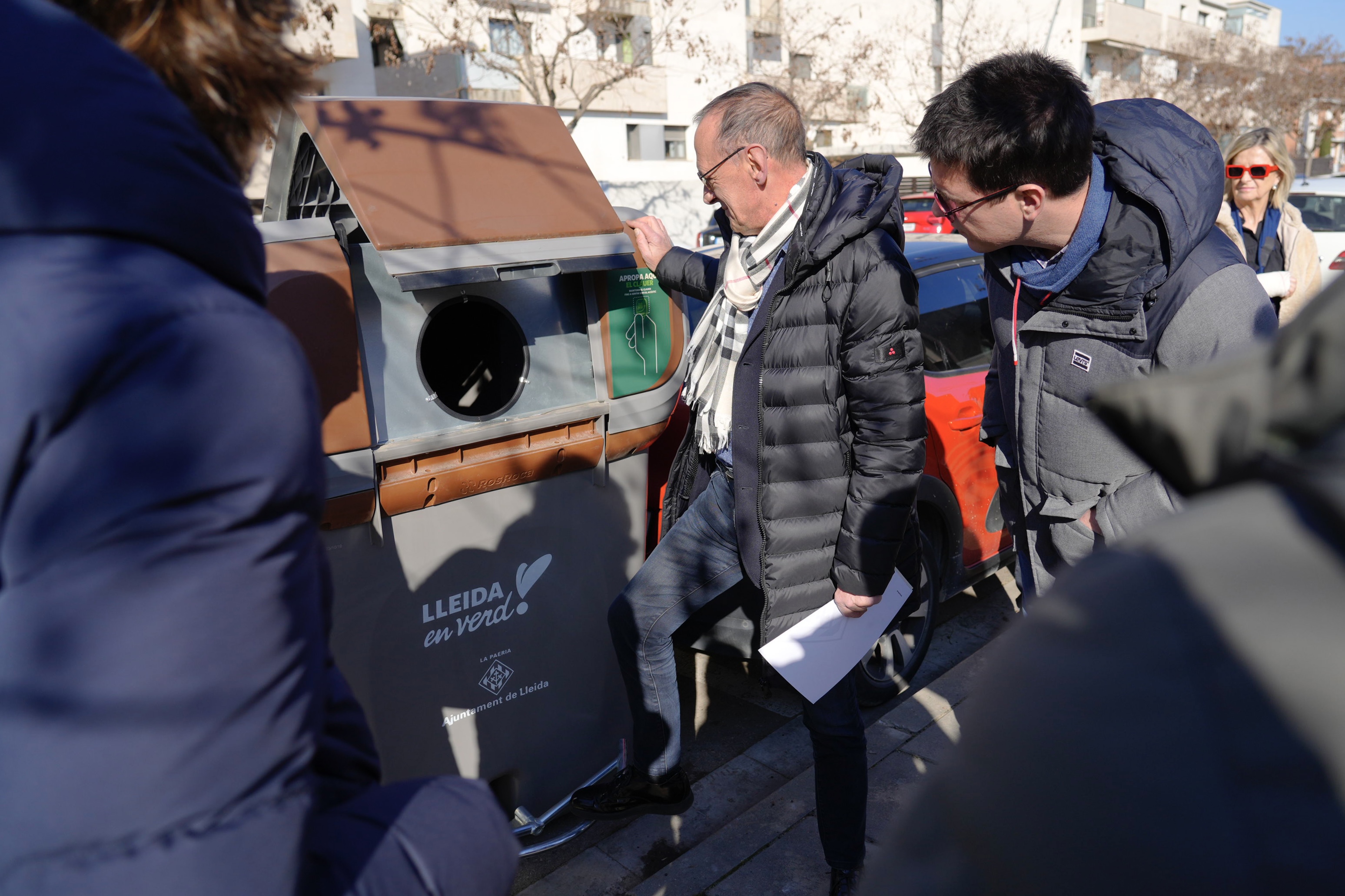 El paer en cap, Miquel Pueyo, el primer tinent d'alcalde, Toni Postius, i el regidor de Cultura, Ciutat i Transició Ecològica, Jaume Rutllant, han visitat aquest matí l'indret on s'ha instal·lat un d'aquests nous contenidors, al carrer Pepita Uriz, acompanyats també de representants del veïnat. Pueyo els hi ha agraït la seva participació en el sistema porta a porta, del qual van ser pioners a Lleida amb la seva implantació l'any 2018. El percentatge de recollida selectiva a Ciutat Jardí i Vila Montcada és ara del 89%, una xifra molt alta.