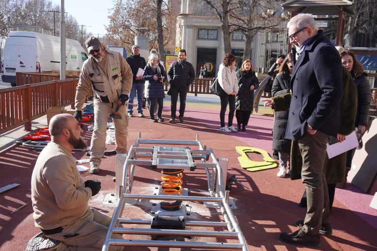 L’Ajuntament de Lleida ha instal·lat nous jocs inclusius a l’espai infantil Rovelló amb la voluntat d’aconseguir parcs on els infants, amb discapacitat o sense, puguin jugar plegats amb els mateixos elements. Avui s’ha fet una primera intervenció en aquest espai, amb la substitució de dos elements: s’ha renovat el joc de rotació anomenat carrusel i el balancí, que és el primer d’aquestes característiques que s’ubica a la ciutat. Pròximament, es reposarà un tercer element: una molla que, igualment, serà inclusiva. Aquesta actuació dona continuïtat a les que ja s’han realitzat amb criteris inclusius al parc de la plaça del Clot, al parc infantil dels Camps Elisis i a la plaça Victorina Vila.