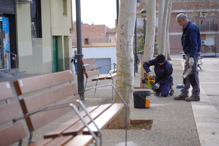 Els 12 bancs que s’instal·len a la plaça Joan XXIII són de fusta, del model Modo de l’empresa Fábregas–i el seu cost ha estat de 2.613,3 euros.