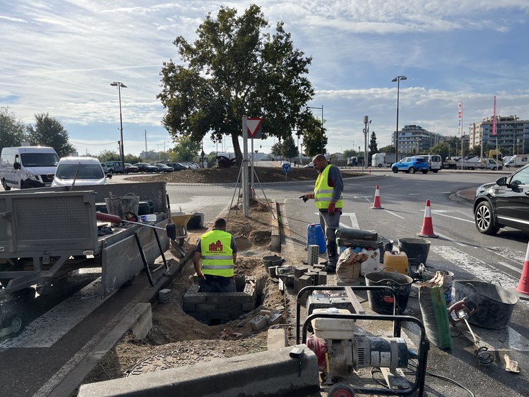 Operaris de les brigades municipals estan duent a terme obres a la cruïlla de l’avinguda Victoriano Muñoz des d’on s’accedeix al recinte de Fira de Lleida, per tal d’instal·lar-hi semàfors per facilitar el pas dels vianants i millorar la seguretat viària.