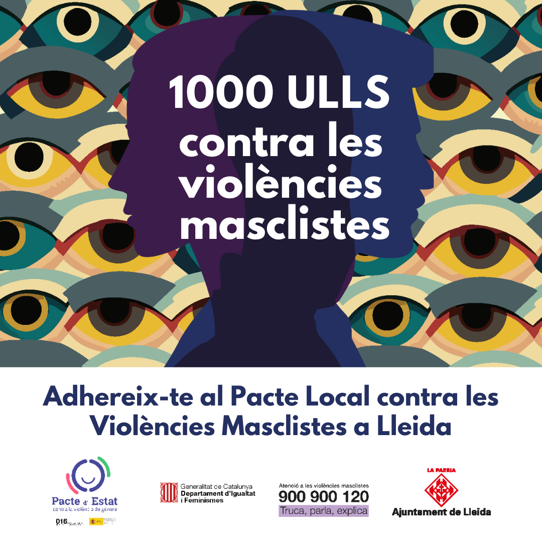 El Pacte Local contra les violències masclistes a Lleida s’emmarca dins de la campanya ‘1000 ulls contra les violències masclistes’ i s’anirà ampliant cada any amb noves adhesions i es ratificarà en un acte institucional en el marc de la commemoració del 25 de novembre, Dia Internacional per a l’Eliminació de la Violència contra les Dones.