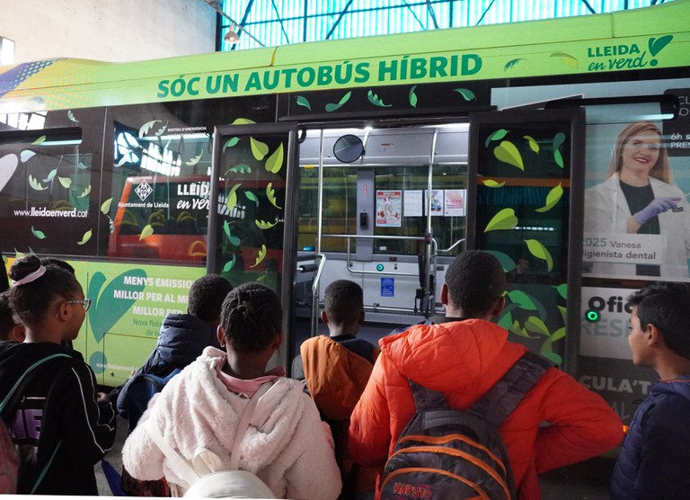 L’alumnat de l’escola Príncep de Viana ha participat aquest divendres en l’activitat escolar “Puja a l’autobús!” que ofereix la Regidoria d’Educació dins el programa Educació a l’Abast. La proposta s’ha reprès després de quatre anys d’aturada per la pandèmia. Deu centres educatius de la ciutat de Lleida prendran part en la 15a edició d’aquesta activitat, que es farà aquest mes de març, amb més de 300 alumnes de 3r de primària.