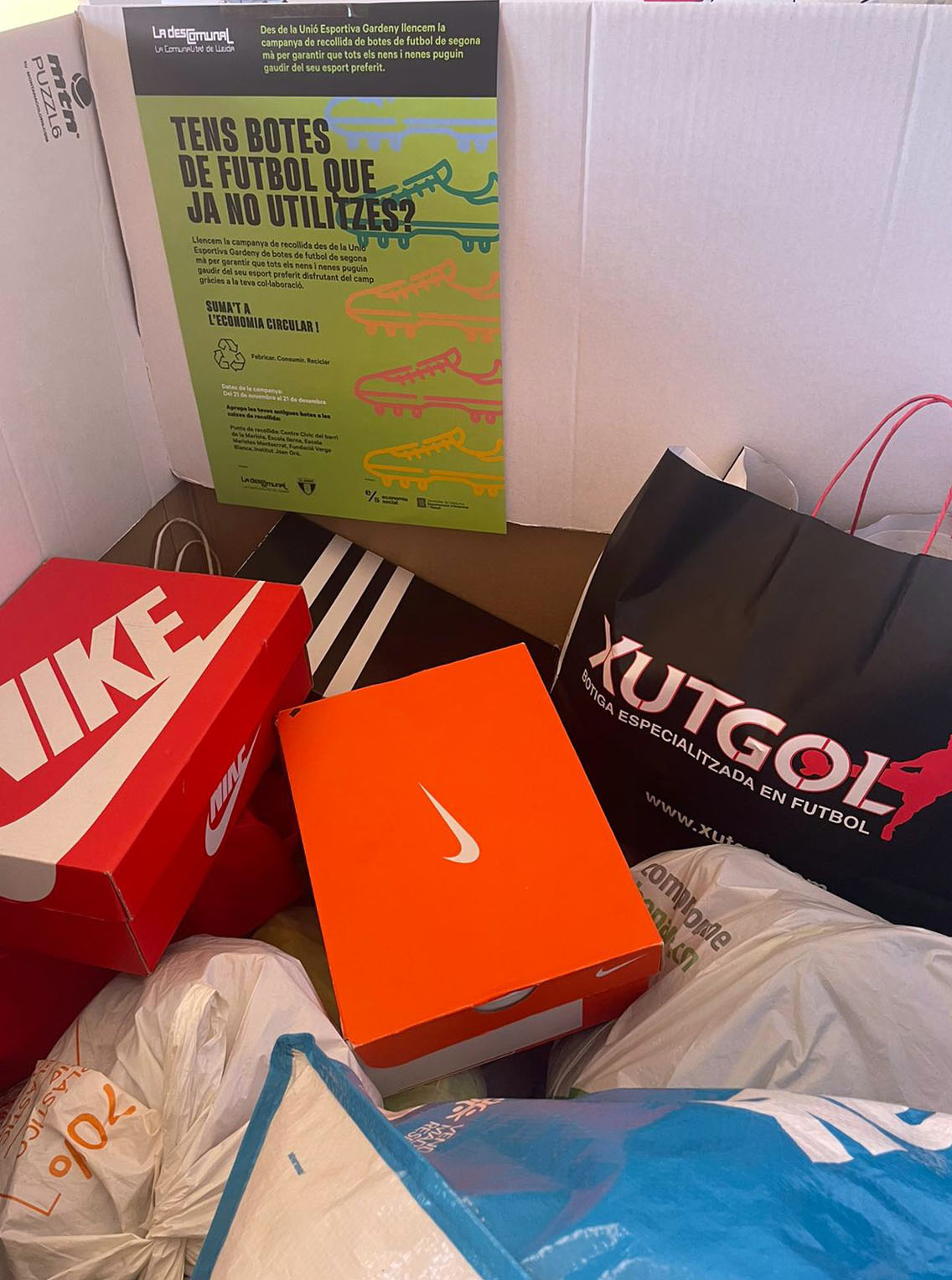 La UE Gardeny i La Descomunal han fet la seva primera campanya de recollida de material esportiu per poder-lo compartir amb nens i nenes del club amb menys recursos. La iniciativa ha permès recollir una cinquantena de botes de futbol de segona mà, així com altres materials, com canelleres i guants de porter, gràcies a la participació dels veïns i veïnes de la ciutat. La campanya, que es va fer a finals d'any, va tenir cinc punts de recollida: l’Escola Ilerna, el Centre Cívic de la Mariola, l’Escola Maristes Montserrat, la Fundació Verge Blanca i l’Institut Joan Oró.