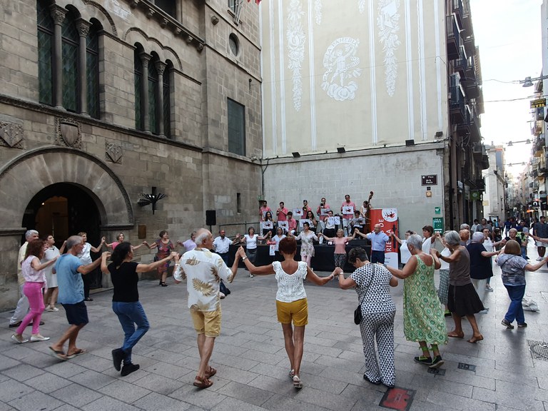 La plaça Paeria ha acollit avui una ballada de sardanes que serveix com a preàmbul dels actes de celebració de la Diada nacional de l’Onze de Setembre. La ballada ha comptat amb l’acompanyament musical de la cobla Vents de Riella.