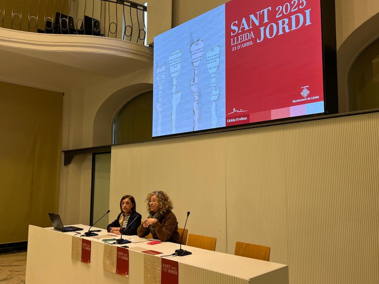 Sant Jordi es viurà plenament a Lleida durant tota la setmana, del 22 al 27 d’abril, amb més d’una quinzena d’activitats culturals que inclouran contes, poesia, teatre, dansa i música, entre altres. La regidora de Cultura i Promoció de la Ciutat, Pilar Bosch, acompanyada de la cap de secció de publicacions de la regidoria, Rosa Mesalles, ha presentat aquest matí la programació d’actes, que es duran a terme en diferents espais de la ciutat, alguns dels quals estaran dedicats a recordar la poeta desapareguda Rosa Fabregat.