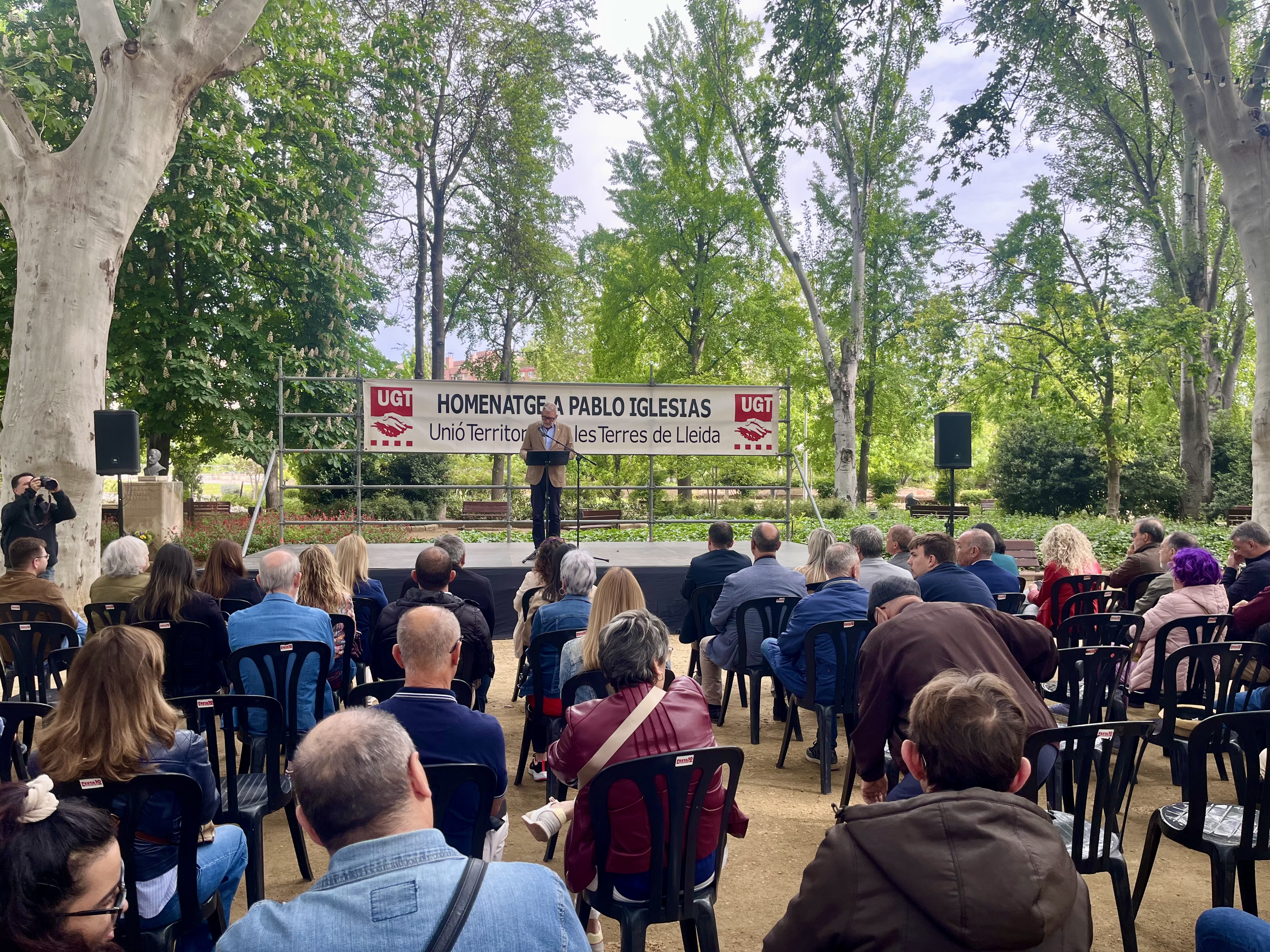 La UGT-Terres de Lleida ha donat el tret d’inici als actes amb l’ofrena floral al monòlit dels Camps Elisis en honor a Pablo Iglesias i l’homenatge als afiliats que fa més de 25 anys que estan a l’organització