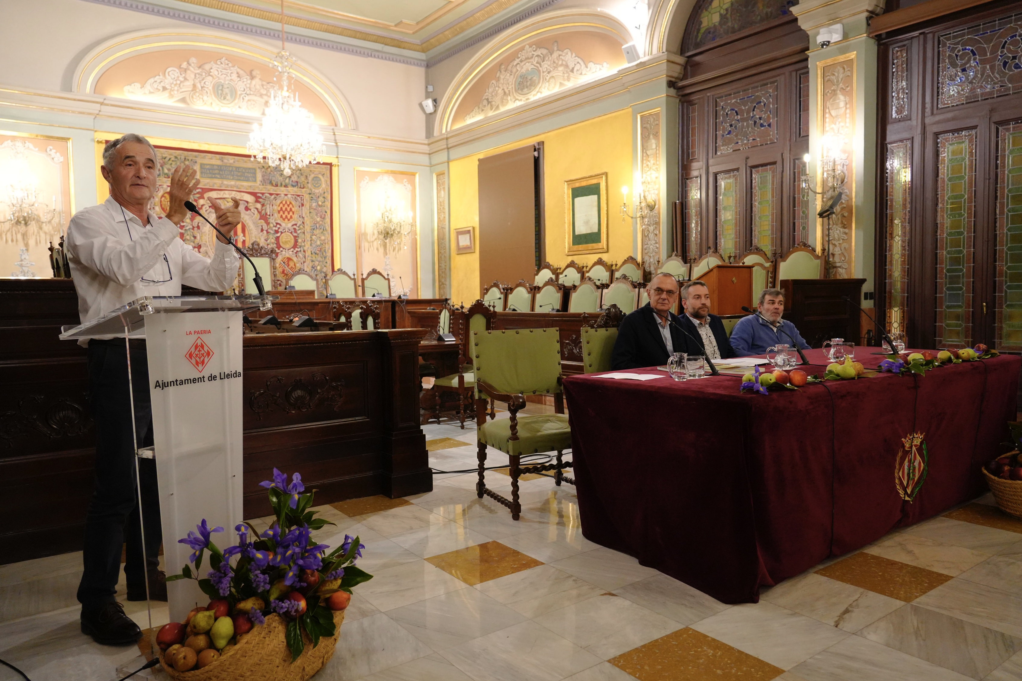 El Dr. Ignasi Iglesias, ha realitzat un pregó que va esdevenir una classe magistral sobre fructicultura, dividida en tres parts: el present del sector, fent referència a fets històrics i el ritme de les innovacions; el present, amb els reptes en sostenibilitat, superpoblació, canvi climàtic, eficiència i tecnologies; i, finalment, el futur, en termes econòmics, d’hàbits saludables i de models en el consum de proximitat que salvaran els productors de fruita.