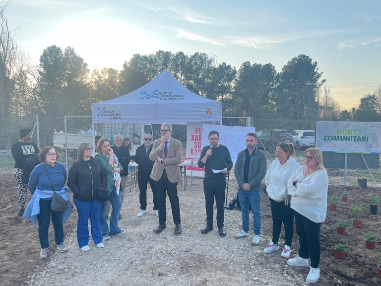 El paer en cap, Fèlix Larrosa, i el regidor de Participació, Roberto Pino, acompanyats de nombrosos veïns i veïnes i entitats col·laboradores, han participat avui en la plantada col·lectiva de plantes aromàtiques autòctones que s’ha fet per posar en marxa un nou hort comunitari en una parcel·la municipal de la zona 09, al carrer Ferran el Catòlic, davant del camp de futbol. Es tracta d'un projecte impulsat per l’Ajuntament de Lleida i La Descomunal adreçat a les famílies i entitats dels barris de La Mariola, Turó de Gardeny, Blocs Joan Carles, Ciutat Jardí  i Joc de la Bola que té per objectiu promoure la vida comunitària i saludable i enfortir vincles.