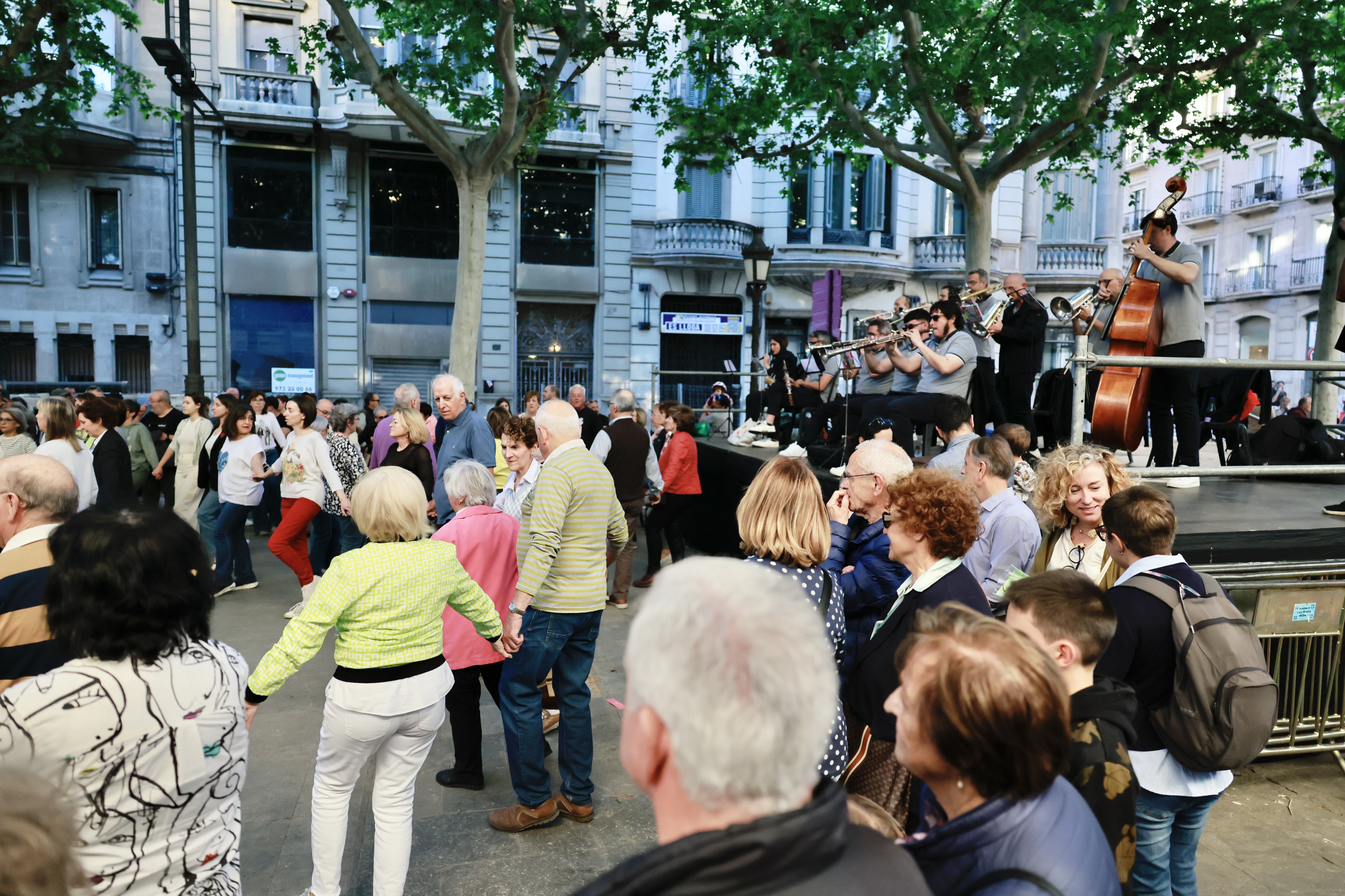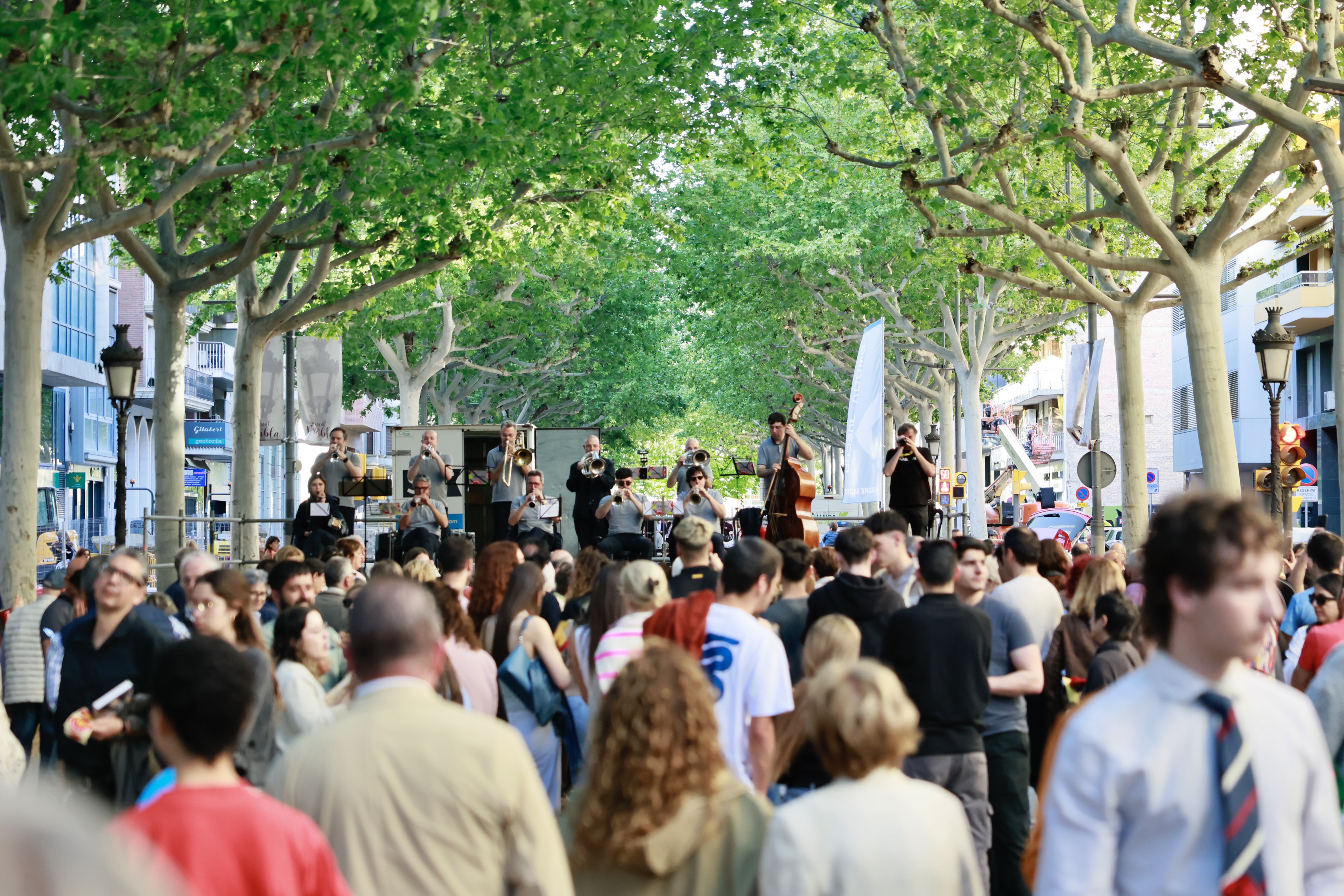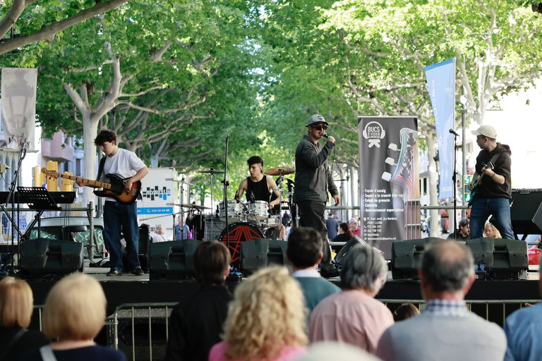 A la tarda, la ciutadania que s’ha acostat al centre de la ciutat ha pogut gaudir de l’actuació de joves talents com la Paula Milara i el grup Angelo, participants del projecte BUC-LAB 2025, a l’escenari ubicat al final de la Rambla Ferran, cruïlla amb el carrer Democràcia. També en aquest espai s’ha fet la tradicional ballada de sardanes, a càrrec de la Cobla Tàrrega.