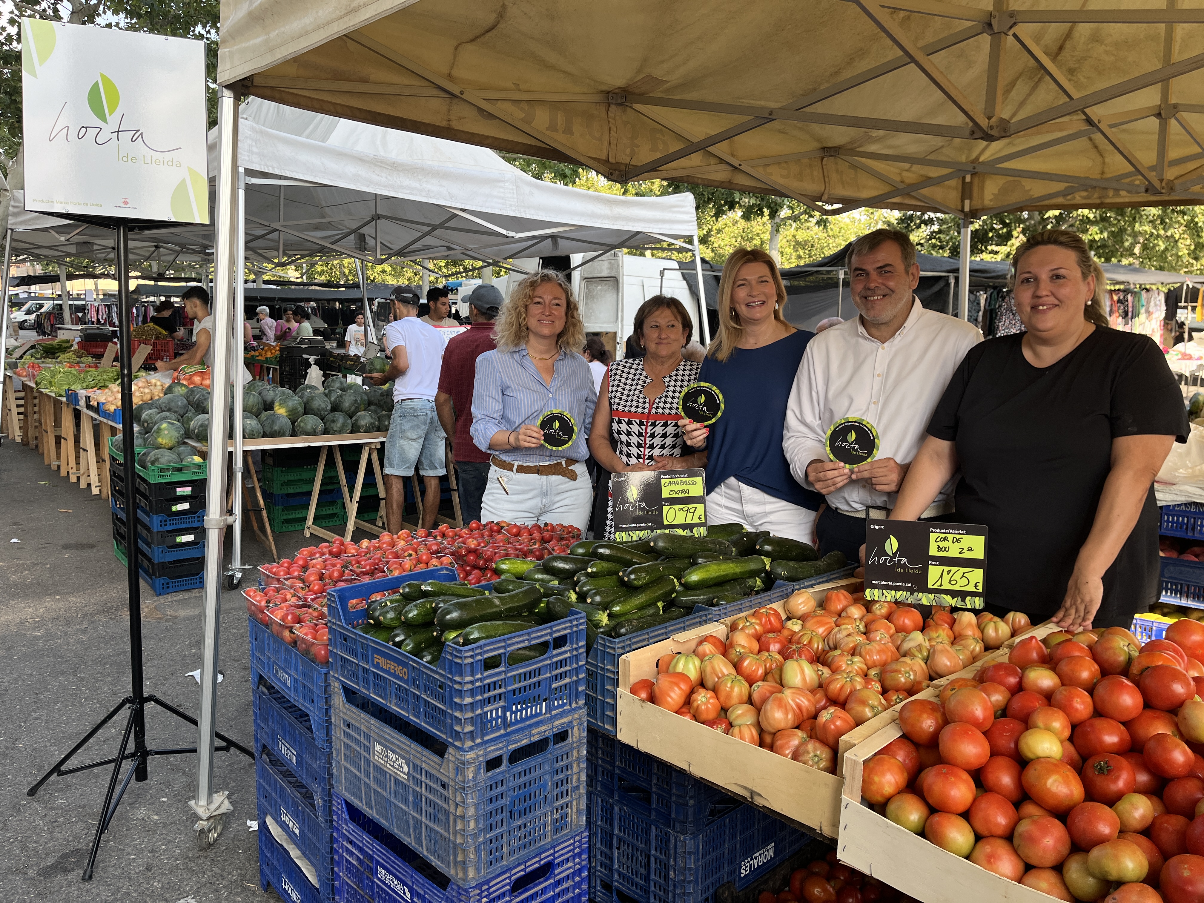 S’han lliurat tòtems de dos metres d’altura per senyalitzar les parades adherides a la marca, cartells de preus per identificar clarament els productes produïts a Lleida i fulls de mà informatius. L’objectiu és diferenciar, donar visibilitat i posar en valor els productes agraris de Lleida, com una alternativa més saludable i sostenible, i ajudar així els productors locals.