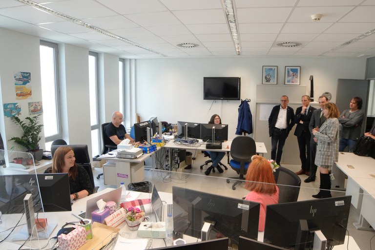 El paer en cap, Miquel Pueyo, s'ha reunit amb el secretari d'Estat de Política Territorial, Alfredo González, i el director general de Cooperació Autonòmica i Local, Fernando Galindo, a la seu dels Serveis Digitals de l'Ajuntament de Lleida. L'equip de Serveis Digitals de la Paeria, encapçalat per la coordinadora, Laura Sunyol, els ha presentat el sistema de ciberseguretat de l'Ajuntament de Lleida que, des de la passada setmana, està connectat a la xarxa nacional de centres de ciberseguretat. És el primer ajuntament català a incorporar-se a aquesta xarxa i també va ser, al gener, el primer SOC (Centre d'Operacions de Ciberseguretat) que es va implantar en català.