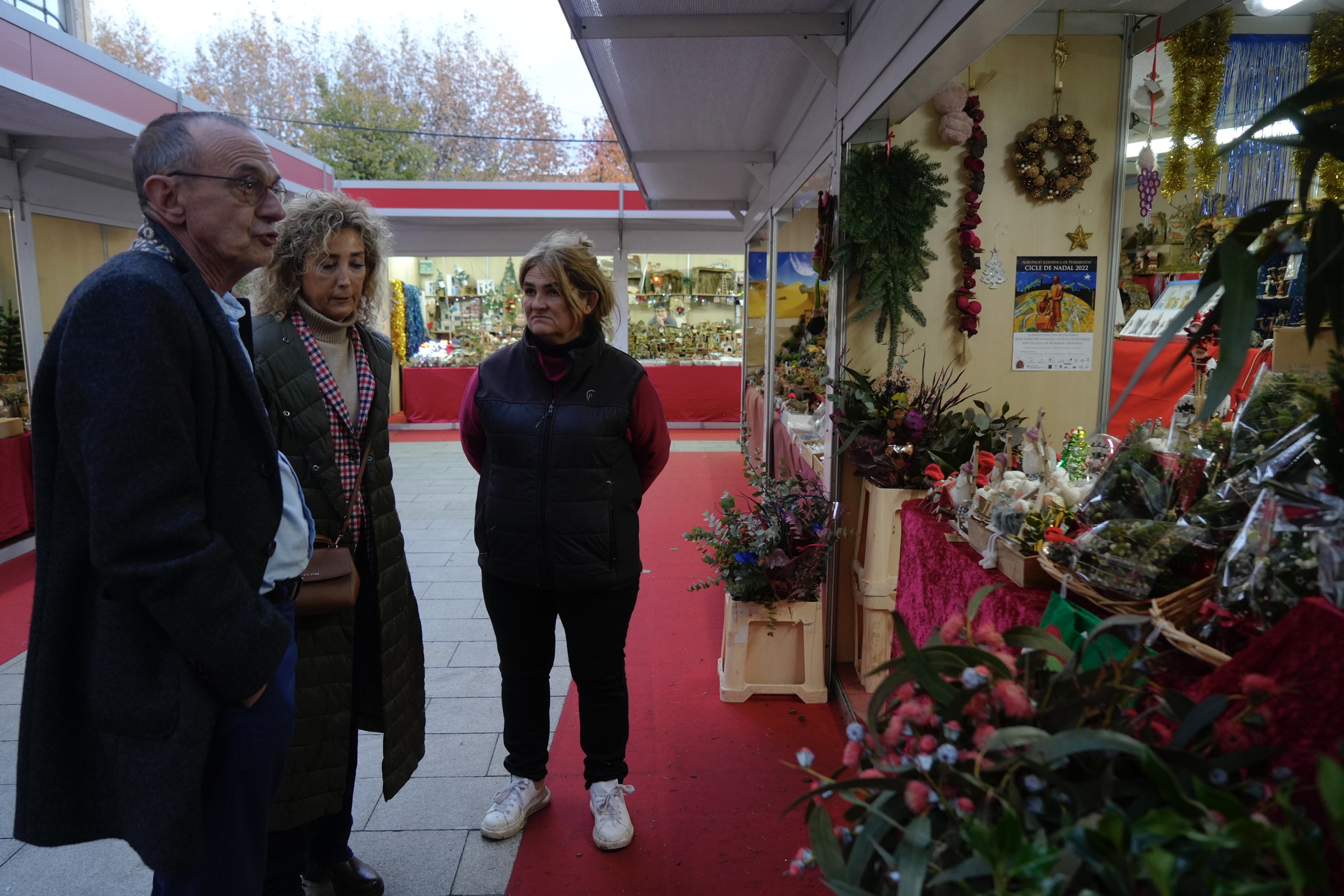 L’alcalde de Lleida, Miquel Pueyo, i la regidora de Consum, Comerç, Mercats i Participació, Marta Gispert, han visitat aquesta tarda el Mercat de Nadal de Lleida que es desplega entorn de la Catedral de Lleida, a l’eix comercial, fins a la nit de Reis,