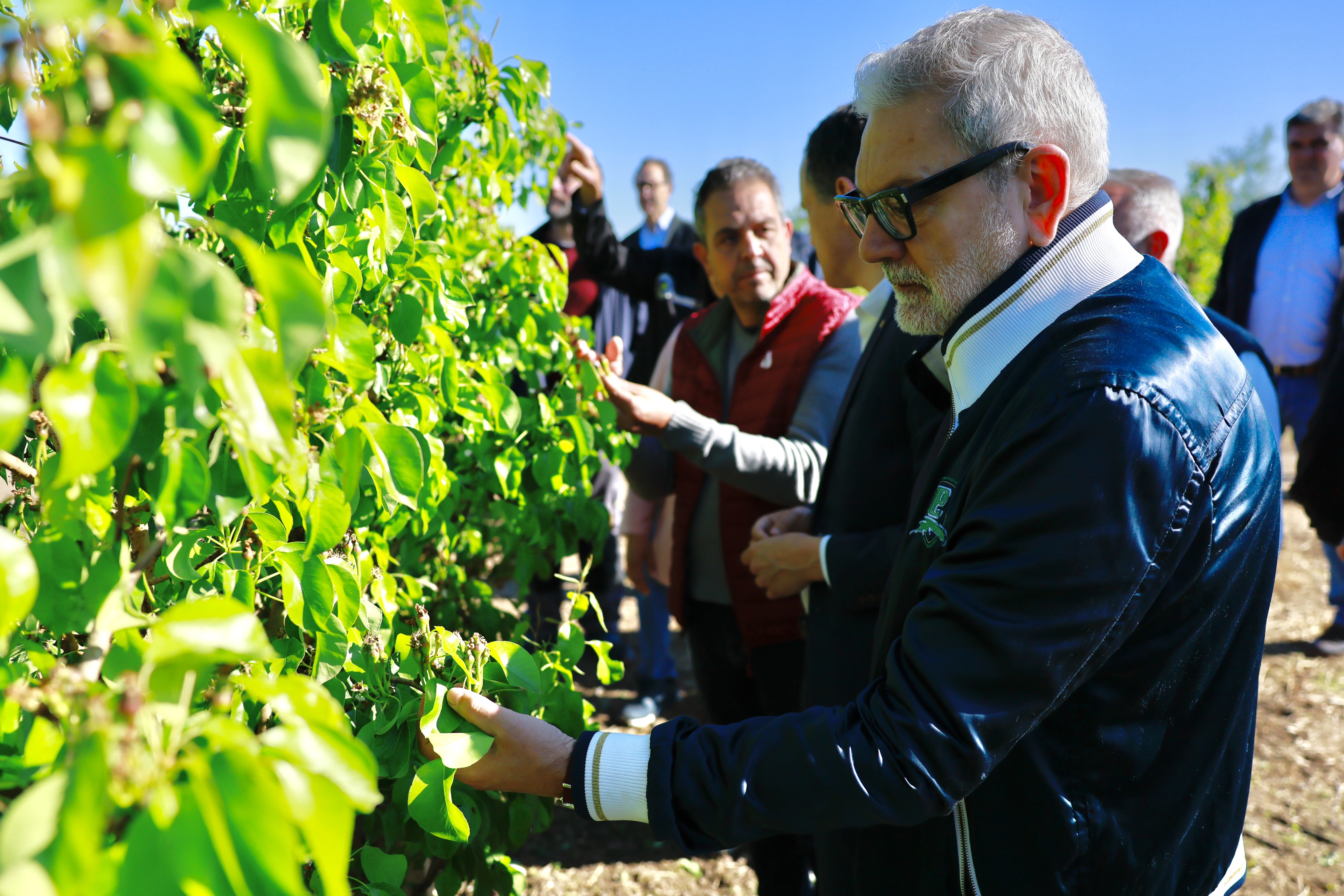 L'alcalde, Fèlix Larrosa, juntament amb el conseller d’Agricultura, Ramaderia, Pesca i Alimentació, Òscar Ordeig, han visitat la Partida de Granyana per valorar l'impacte que ha tingut als camps fruiters i conèixer les demandes del sector agrícola