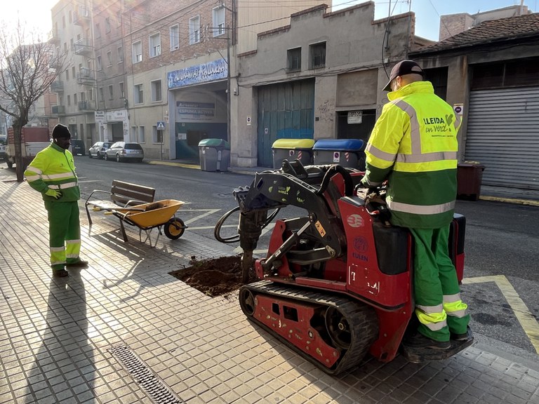 L’empresa concessionària del servei de Jardineria està duent a terme les tasques de plantació d’arbrat per omplir les mancances que hi ha als escocells dels carrers dels diferents barris, amb la previsió de plantar uns 400 nous arbres fins al mes de març.