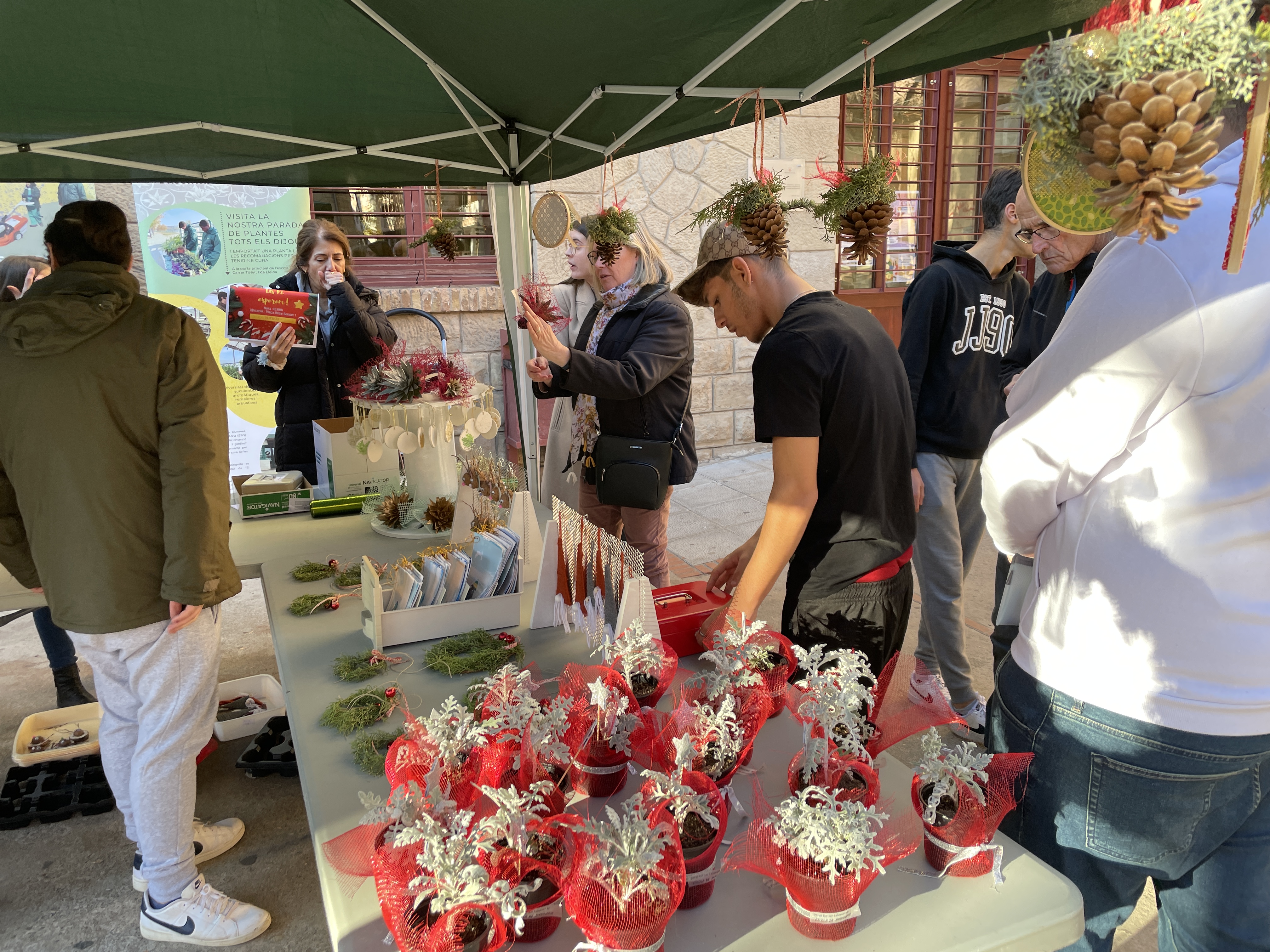 L’Escola Municipal de Jardineria ha instal·lat aquest dijous un Pop Up Market nadalenc a la plaça de Rosa Sensat, davant de l'Institut Municipal d'Ocupació (IMO) Salvador Seguí. A la parada s'han pogut trobar plantes de producció pròpia i una gran varietat de manualitats nadalenques fetes a mà per l’alumnat.