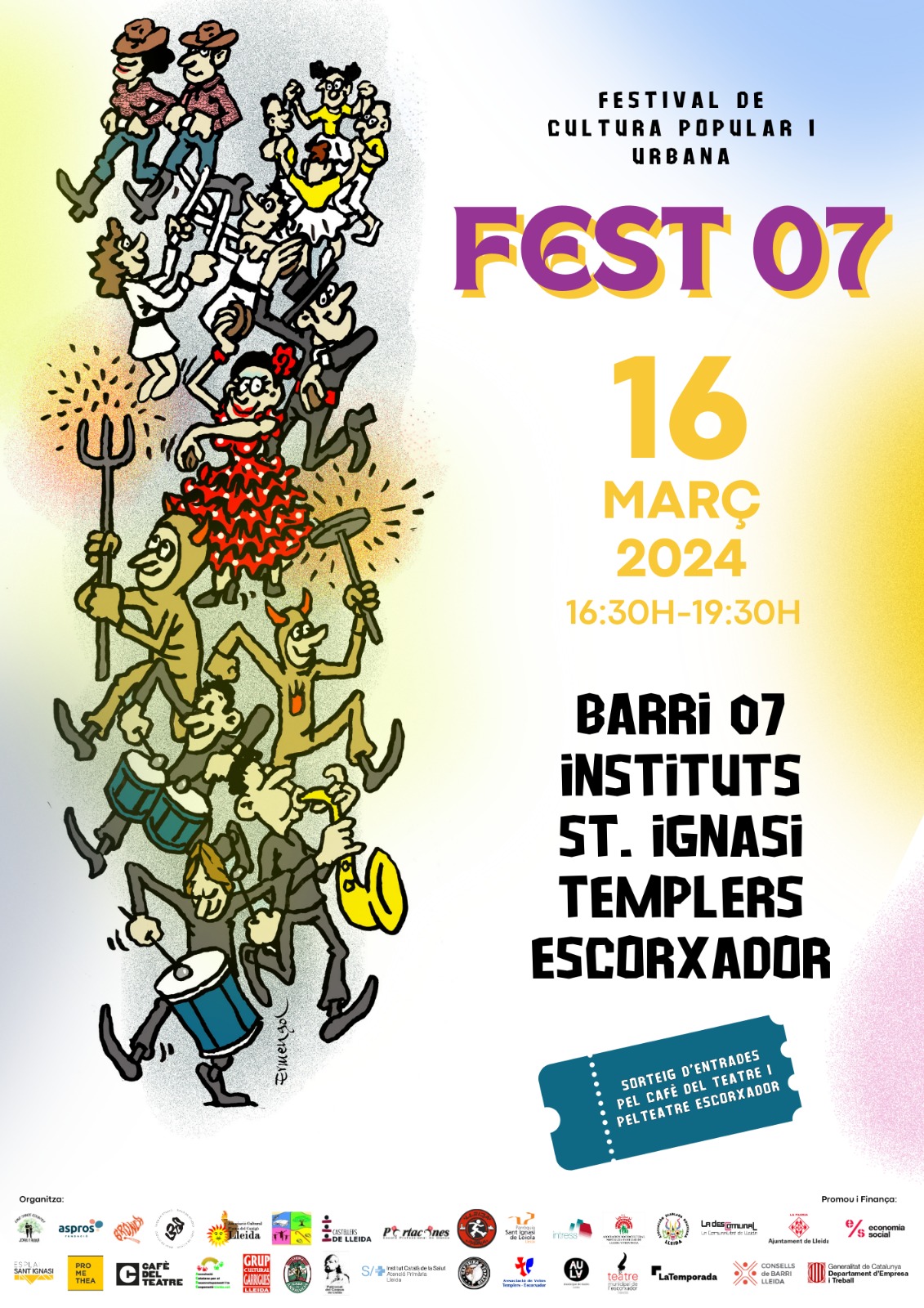 La primera edició del Fest 07, el festival de cultura popular i urbana al barri Instituts-Sant Ignasi Templers-Escorxador se celebrarà demà dissabte a la tarda amb l’impuls de l’àrea de Participació de l’Ajuntament de Lleida i les associacions i entitats del barri que formen part del Grup Dinamitzador del Consell de Barri 07 Instituts - Sant Ignasi, Templers- Escorxador, amb el suport i finançament de La Descomunal.