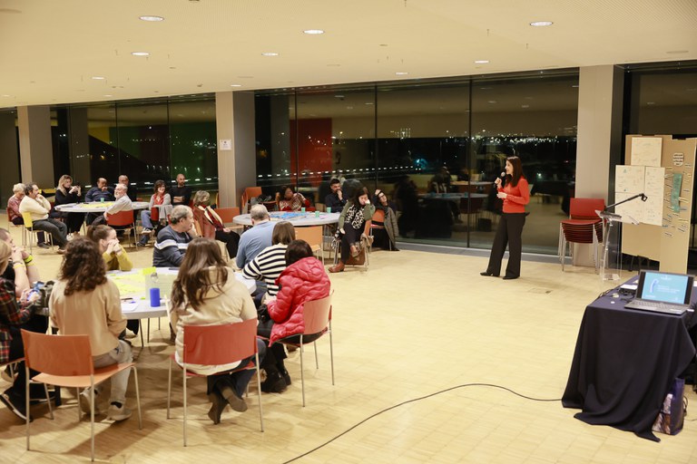 Cada grup ha designat dues persones voluntàries que han estat les encarregades d’escriure les aportacions de la reflexió conjunta que el seu equip ha fet durant els 15 minuts en què s’ha generat el debat per cada temàtica. Després, les persones representants de cada taula temàtica han exposat totes les aportacions que han considerat que eren rellevants. També s'ha comptat amb la presència de la Mercè Tarrés, relatora gràfica, que ha relatat les conclusions del taller participatiu a través d’imatges gràfiques de cadascun dels eixos