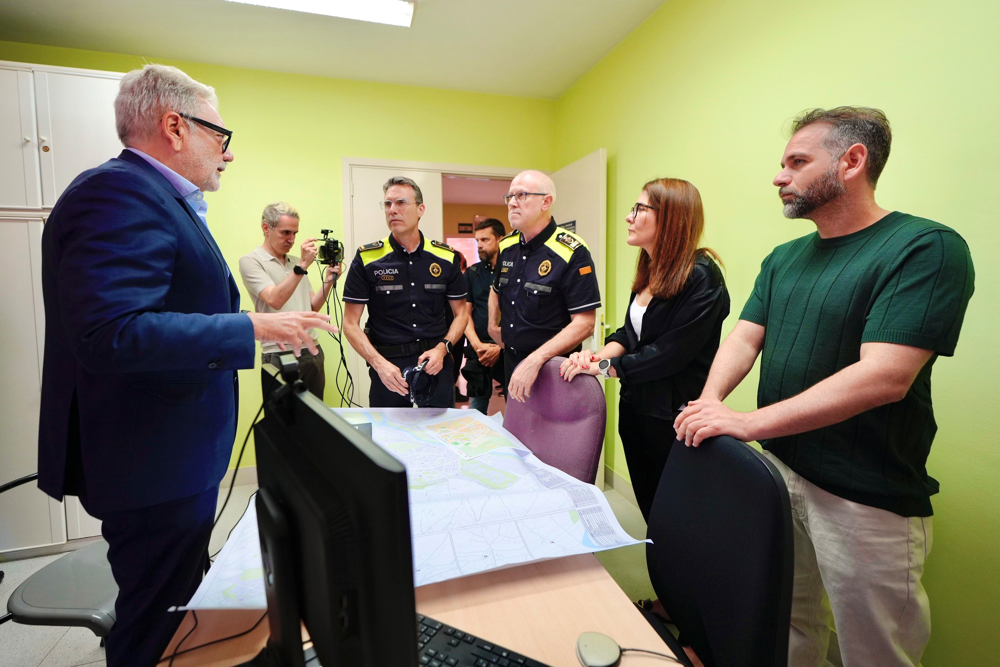 L’alcalde de Lleida, Fèlix Larrosa, acompanyat de la tinenta d’alcalde i regidora de Seguretat, Mobilitat i Civisme, Cristina Morón; el tinent d’alcalde d’Acció i Innovació Social i Participació i Drets Civils, Carlos Enjuanes, i el regidor de la Mariola, Xavi Blanco, ha visitat el primer dia d’activitat al nou Centre Operatiu de la Guàrdia Urbana a la Mariola.