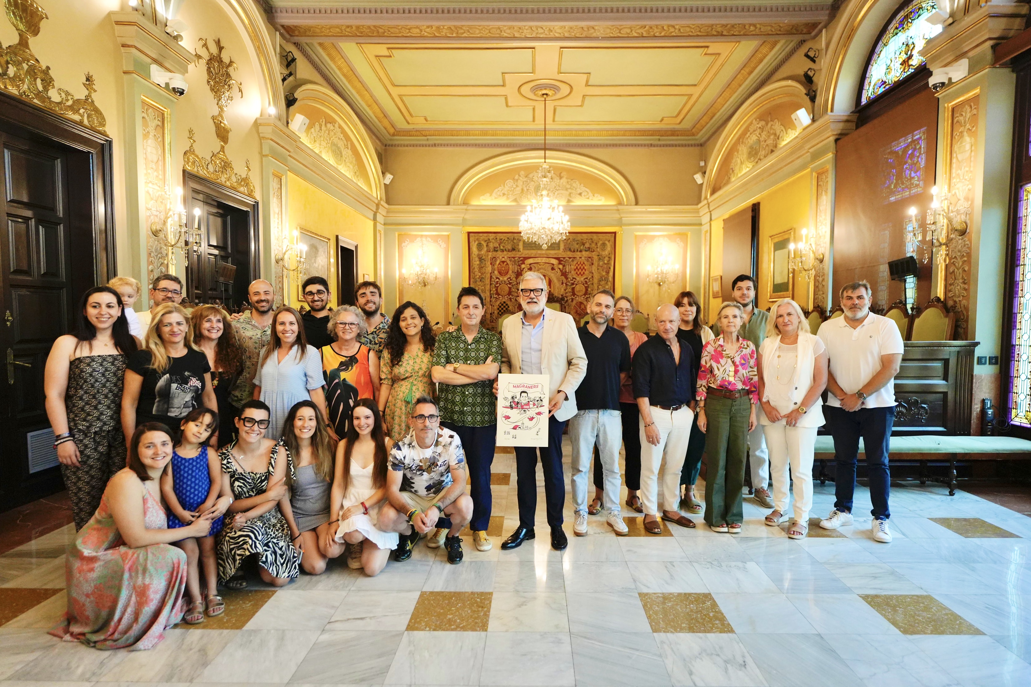 L’alcalde de Lleida, Fèlix Larrosa, acompanyat del regidor de Joventut, Educació, Ocupació, Festes i Igualtat, Xavi Blanco, ha rebut avui al Saló de Sessions de la Paeria els representants de l’Associació Hangar Magraners amb motiu del 20è aniversari del grup de teatre “Magraners a Escena”, amb el seu director, Ramon Molins, al capdavant.