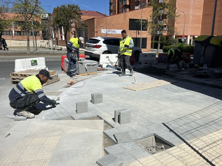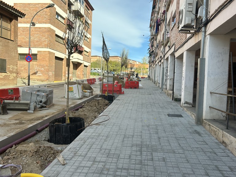 Recta final de les obres al carrer Artur Mor, amb la plantació de dotze arbres