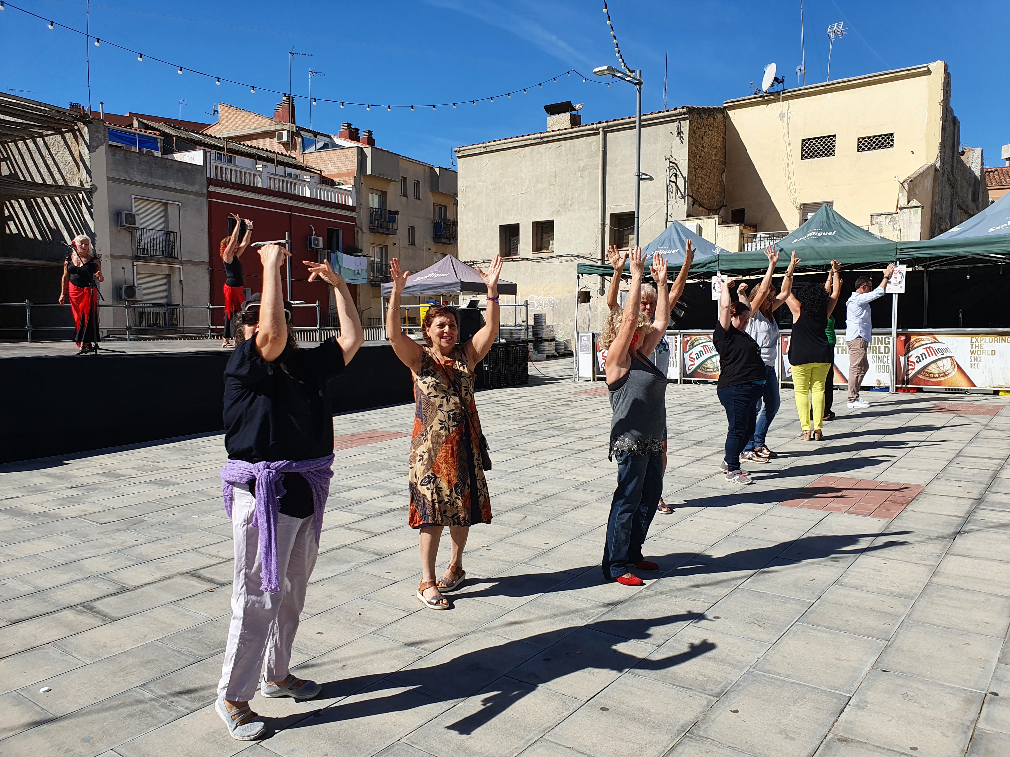 Dolors Pubill ha conduït el taller de Garrotin que ha tingut lloc a la plaça del Dipòsit..