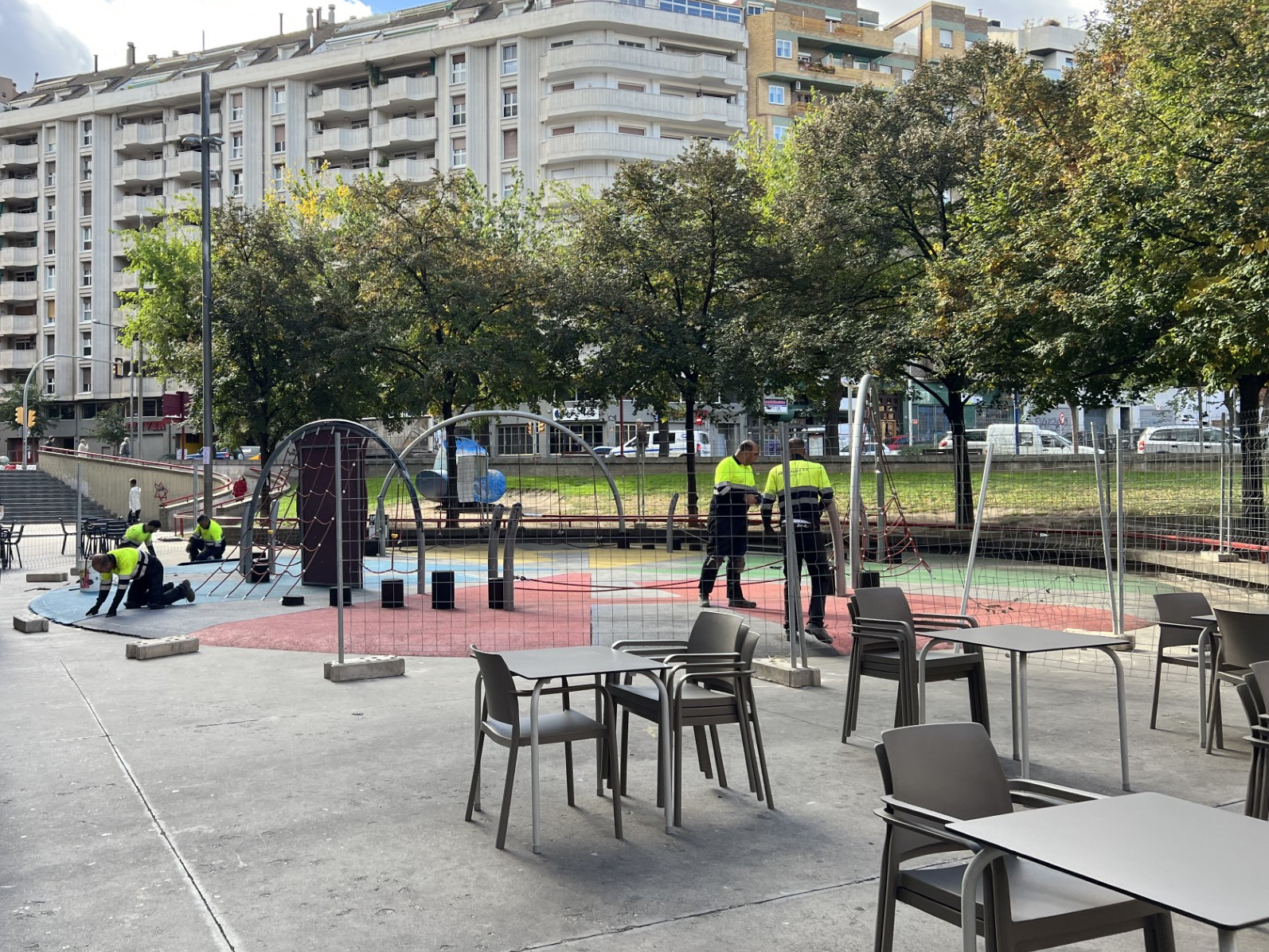 Finalment, dimarts s’iniciaran els treballs de reparació del paviment amortidor de cautxú de l’espai infantil Rovelló, a l’avinguda de Blondel, que romandrà tancat dimarts i dimecres, ja que mentre es realitzen les tasques de renovació o arranjament del paviment, no es permet l’accés a les àrees de jocs infantils.