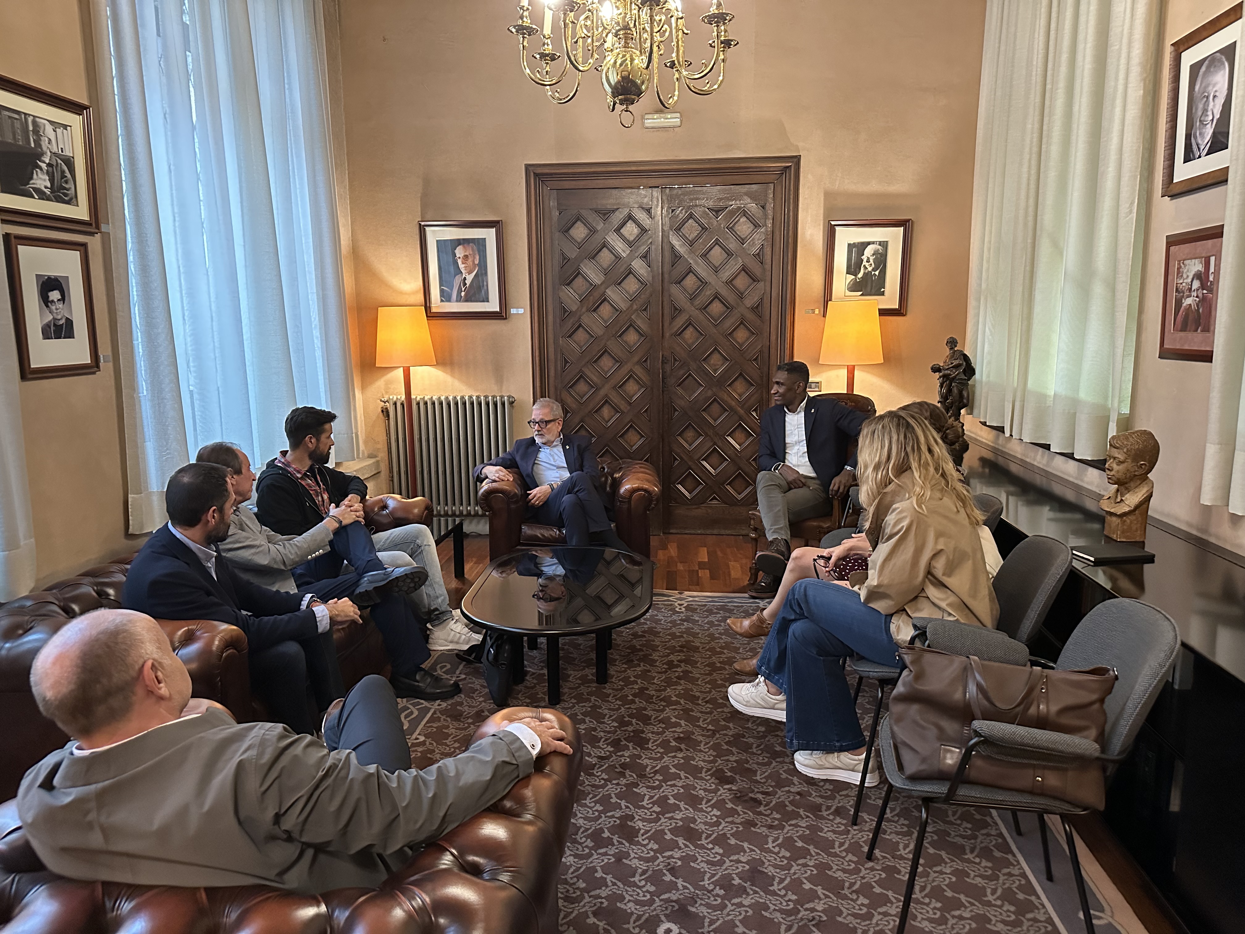 L’alcalde Fèlix Larrosa els ha rebut a la Paeria per conèixer de primera mà aquest projecte d’inclusió social a través de la pràctica esportiva