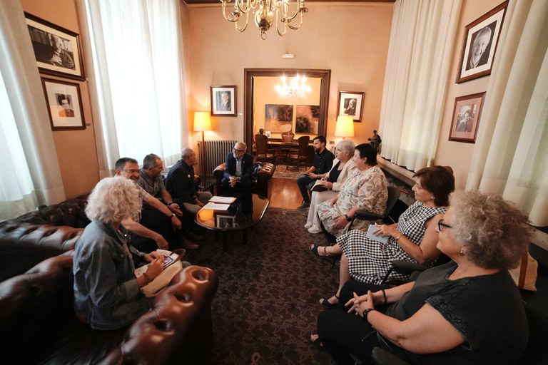 L’alcalde de Lleida, Fèlix Larrosa, acompanyat de la regidora Carme Valls i del regidor Carlos Enjuanes, ha mantingut avui una primera reunió de treball amb el president de la Federació d’Associacions de Veïnes i Veïns de Lleida, FAVLL, Toni Baró, acompanyat d’una nodrida representació de la junta de l’entitat veïnal.
