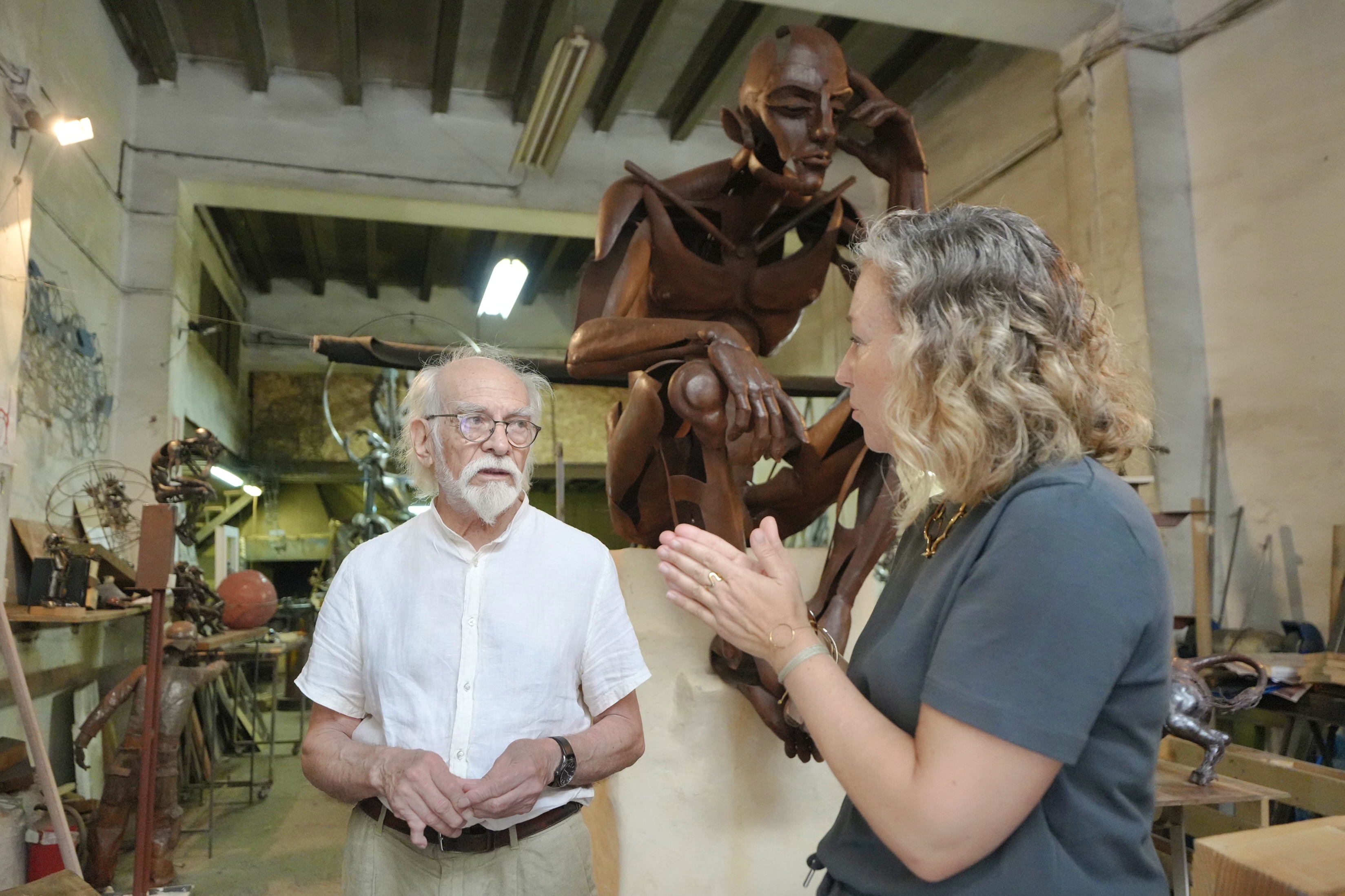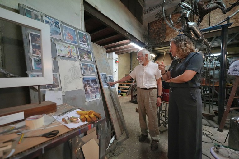 La regidora de Cultura, Pilar Bosch, ha visitat aquest matí el taller de l’escultor Miguel Ángel González en el marc d’una sèrie de trobades que durà a terme aquesta setmana als llocs de treball de diferents artistes plàstics i visuals de Lleida.