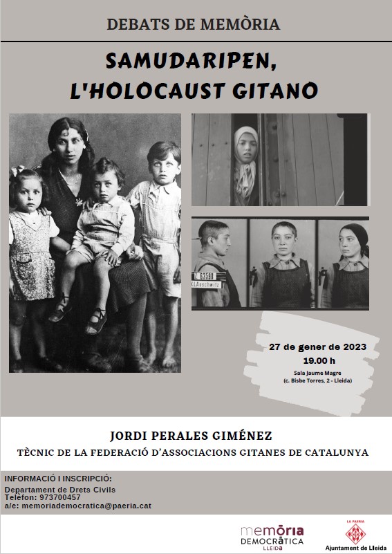 Demà divendres també tindrà lloc la conferència “Samudaripen, l’Holocaust gitano”, a la sala Jaume Magre, a les 19 h. (c/ Bisbe Torres, 2). El dia 27 de gener es commemora el Dia Internacional en Memòria de les Víctimes de l’Holocaust. Per tal motiu, Memòria Democràtica ha organitzat aquesta conferència al voltant del genocidi que van patir els gitanos. La història del poble gitano està plena de persecucions i intents d'extermini. La culminació de segles de persecució va ser durant la Segona Guerra Mundial quan el règim nazi i els seus aliats van començar una tasca d'extermini total de la població gitana i jueva. En la conferència s’explicaran els antecedents, les teories racials nazis, la situació de la població gitana europea durant la primera meitat del segle XX, les conseqüències de l'intent d'extermini i la lluita del poble gitano per ser reconeguts com a víctimes del genocidi que no es va completar fins a principis de segle XXI, fa només unes dècades.