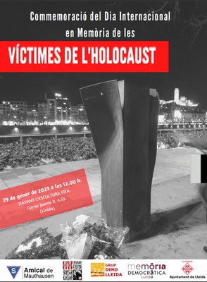La Ajuntament de Lleida commemora aquest dia el diumenge, a les 12 h. davant de l’escultura FITA, d’Àngel Eroles. L’activitat està emmarcada en el conveni de col·laboració per realitzar accions de recuperació de la Memòria Democràtica entre l’Ajuntament de Lleida, el Centre Excursionista de Lleida i l’Amical de Mauthausen, dins del projecte Stolpersteine.
