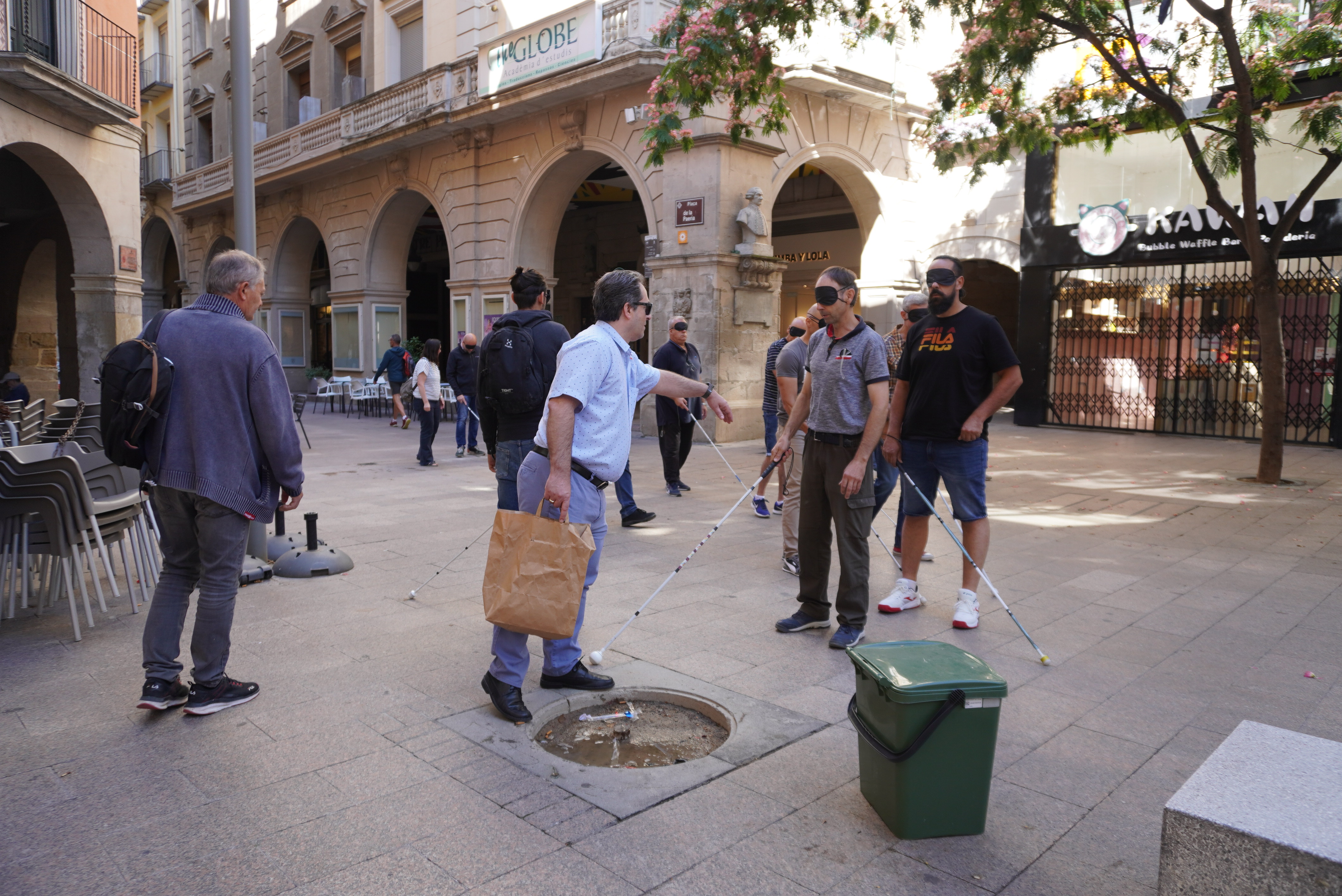 Els tècnics municipals han fet un circuit amb els ulls tapats i amb cadira de rodes per ser conscients de les barreres en l'entorn.