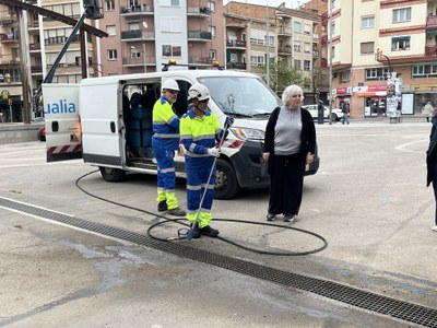 El programa Barri a Barri de neteja intensiva i manteniment fa parada aquesta setmana a Ronda-Clot. La tinent d’alcalde i regidora del barri, Carme Valls, juntament amb diversos tècnics municipals, ha visitat els treballs de neteja que s’estan realitzant avui a la plaça del Clot de les Granotes.
