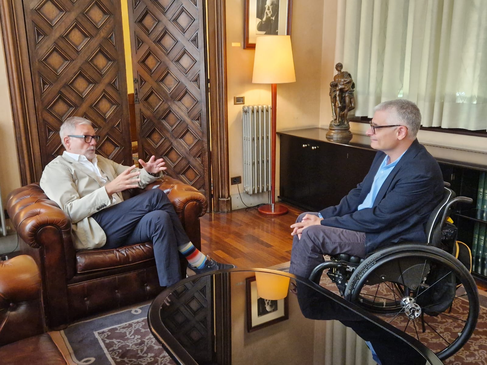 Trobada entre el paer en cap, Fèlix Larrosa, i l’alcalde de Torrefarrera, Jordi Latorre
