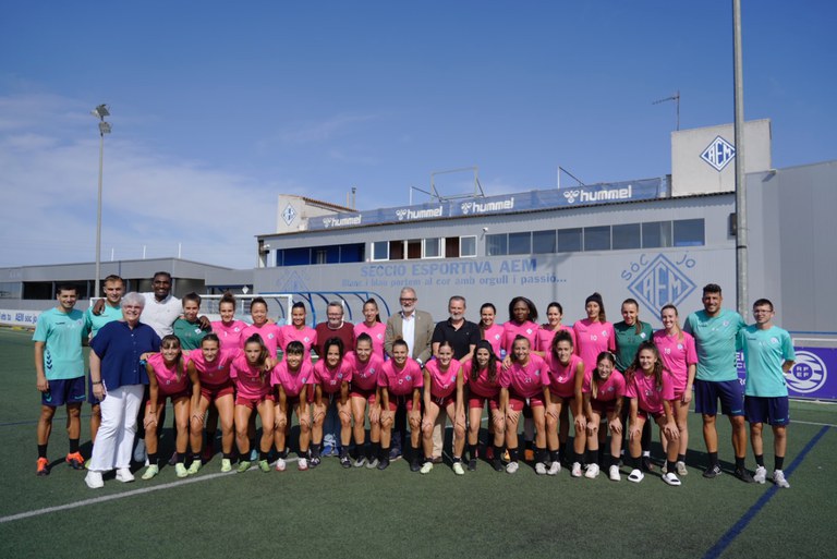 L’alcalde ha estat rebut pel president de l’AEM, Carlos Sisteré, i per tot l’equip tècnic i les jugadores del femení que juga a la primera federació femenina.